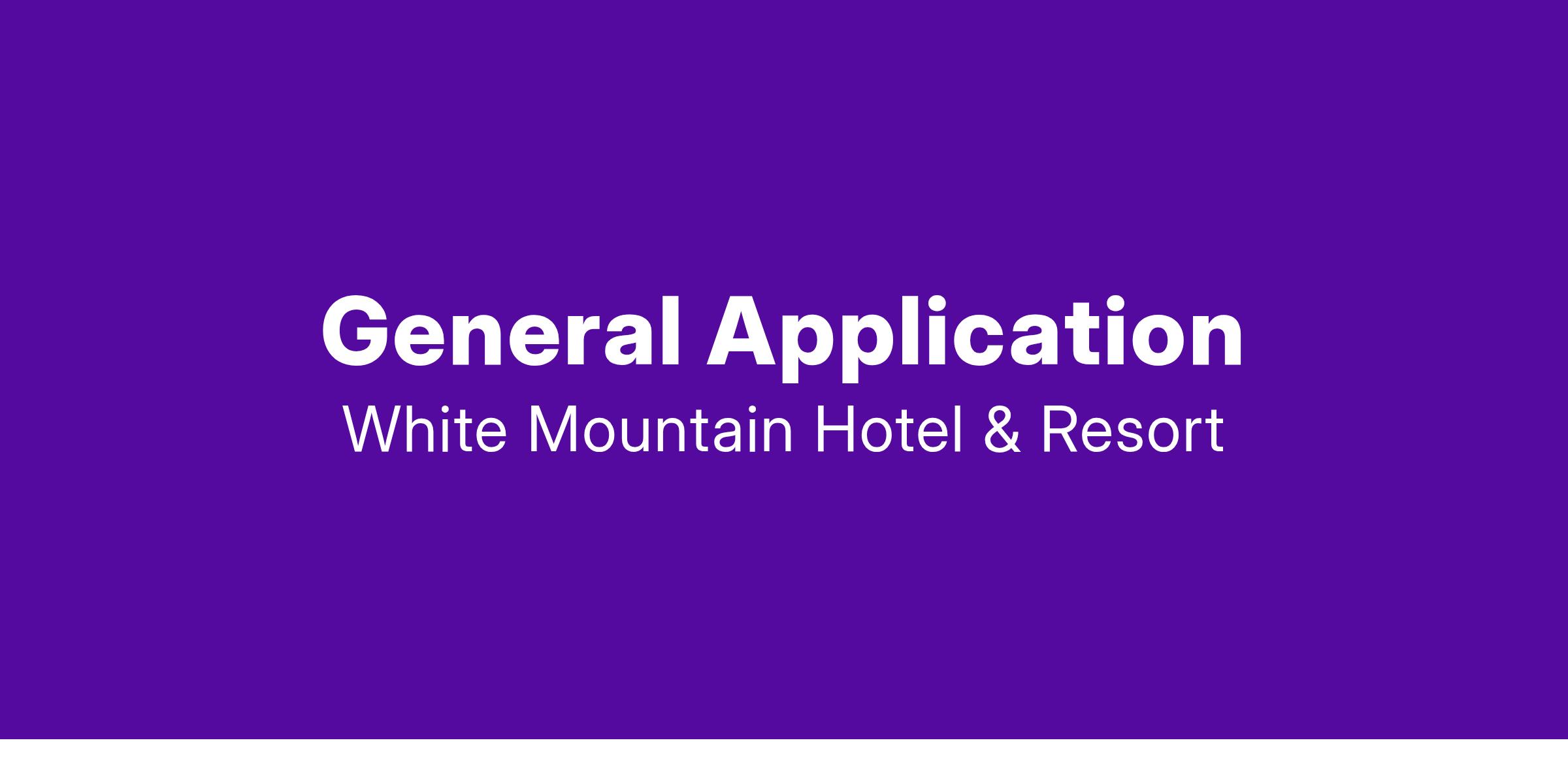 This is an application for all positions in all departments at the White Mountain Hotel & Resort. Apply here if the job you are interested in is not currently listed.