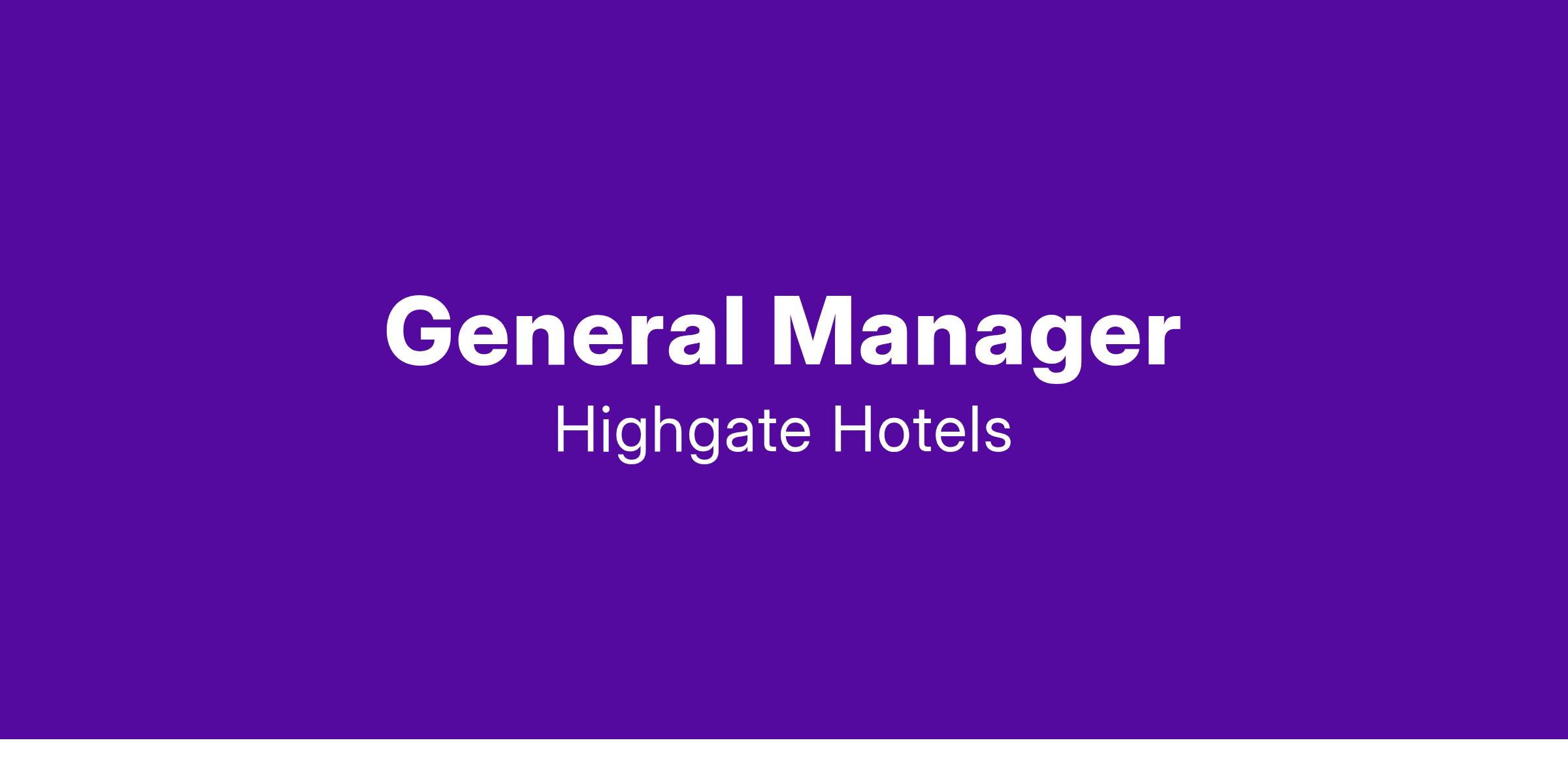 We are looking for a General Manager to embark on their journey with Highgate. The General Manager is responsible for continually focusing on achieving hotel profitability through revenue generation, cost control, guest satisfaction, and developing employees while maintaining the integrity of the hotel.