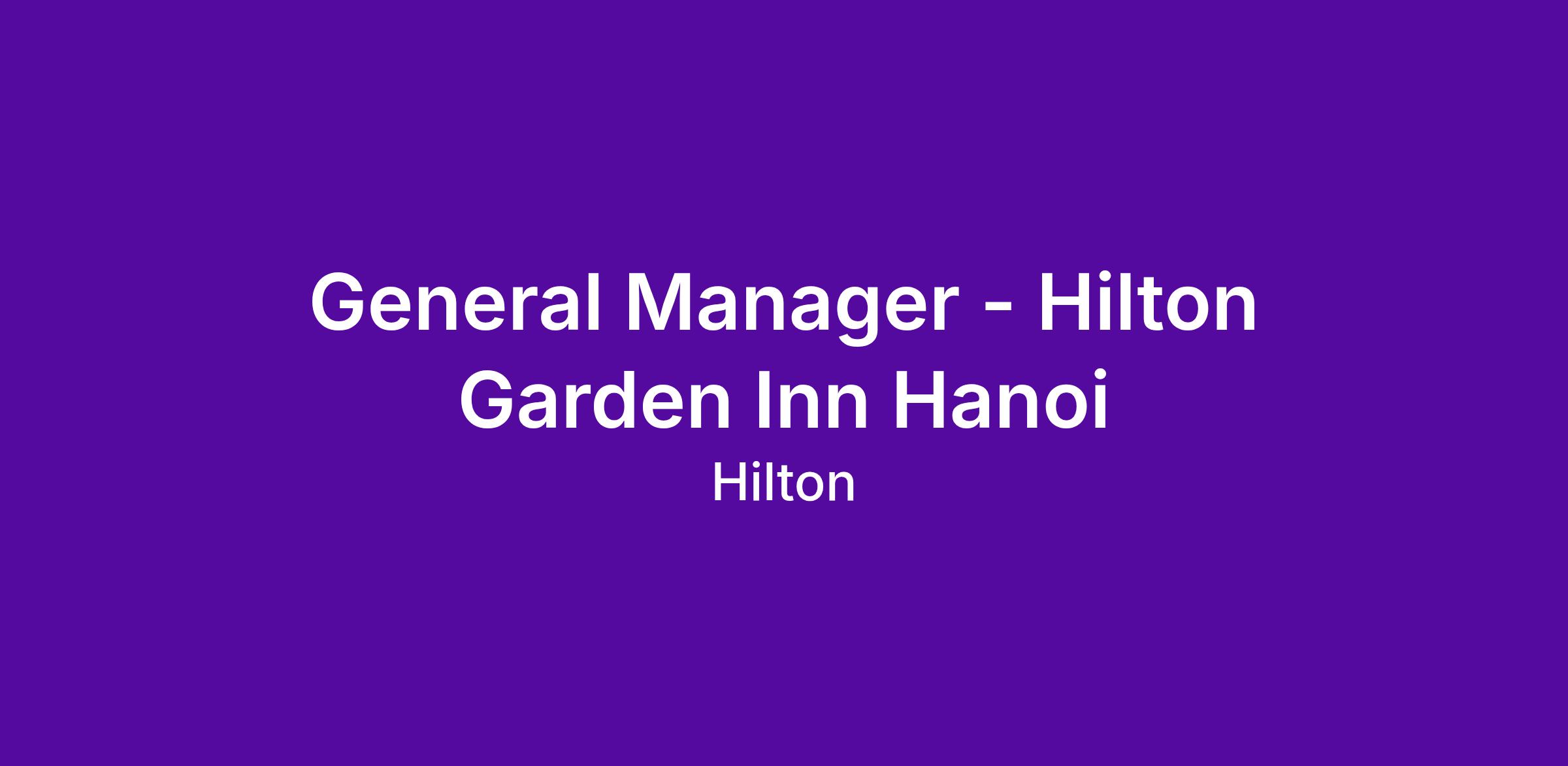 The General Manager at Hilton Garden Inn Hanoi is responsible for managing daily hotel operations and providing overall leadership in the hotel's continuing effort to deliver outstanding guest service and financial profitability.