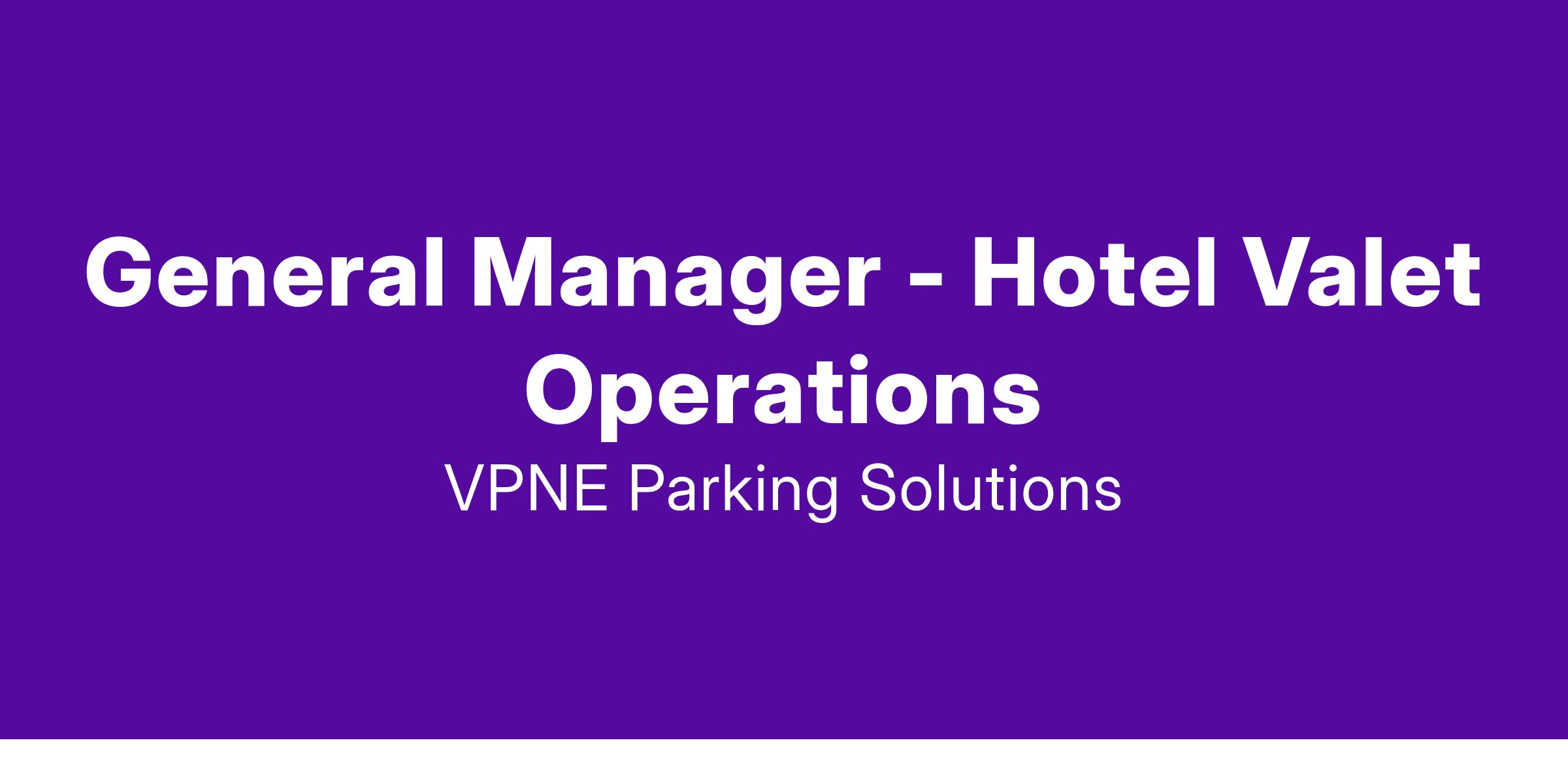 The role of the Valet & Parking General Manager is to oversee and manage the hotel valet operation, parking and lot services by providing exceptional guest service and maintaining an environment of safety and risk prevention. Using top notch customer service skills, professionalism and through leading by example, the General Manager will create an atmosphere that caters to the many varying needs of hotel guests and visitors through effective team leadership and management. The General Manager will effectively communicate and execute VPNE policies, procedures and brand standards to optimize service and revenue while fostering a trustworthy client relationship.