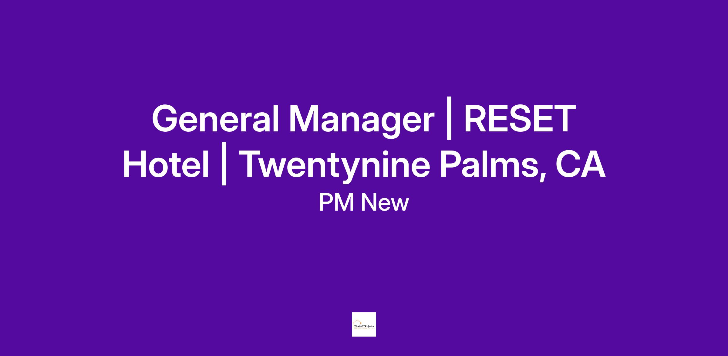 General Manager | RESET Hotel | Twentynine Palms, CA
