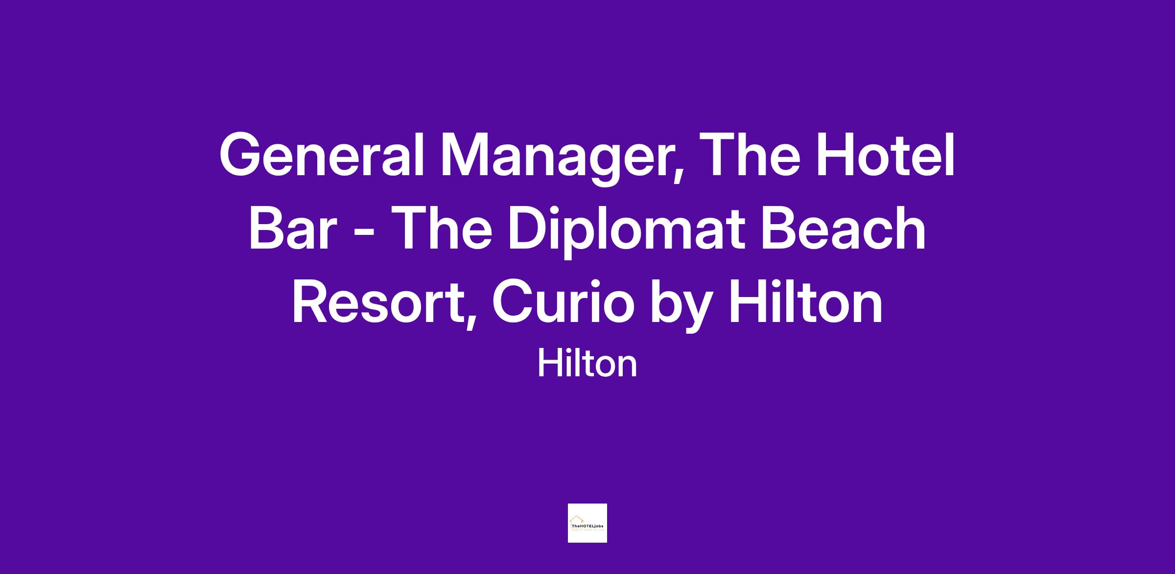 The Diplomat Beach Resort, Curio by Hilton, is hiring a General Manager to lead operations at its newly reimagined Hotel Bar, a lively, music-filled venue connected to the lobby. This oceanfront resort features 1,000 rooms, two beachside pools, a kids’ splash pad, and 1,000 feet of beach. The General Manager will oversee a team of 20+ and reports to the Director of Restaurants.