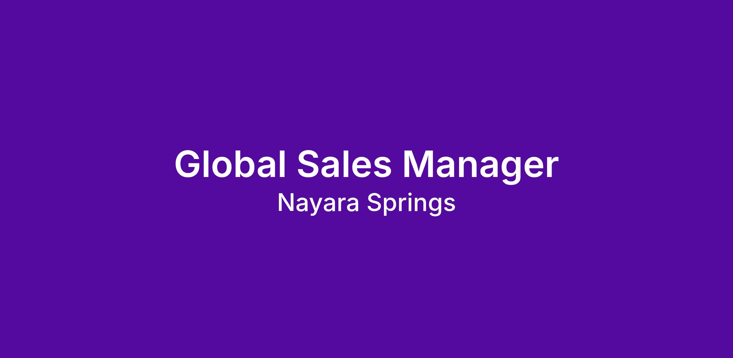 Nayara Resorts, a proud member of Relais & Châteaux, is seeking a Global Sales Manager passionate about excellence in hospitality and the creation of authentic, unforgettable experiences.
