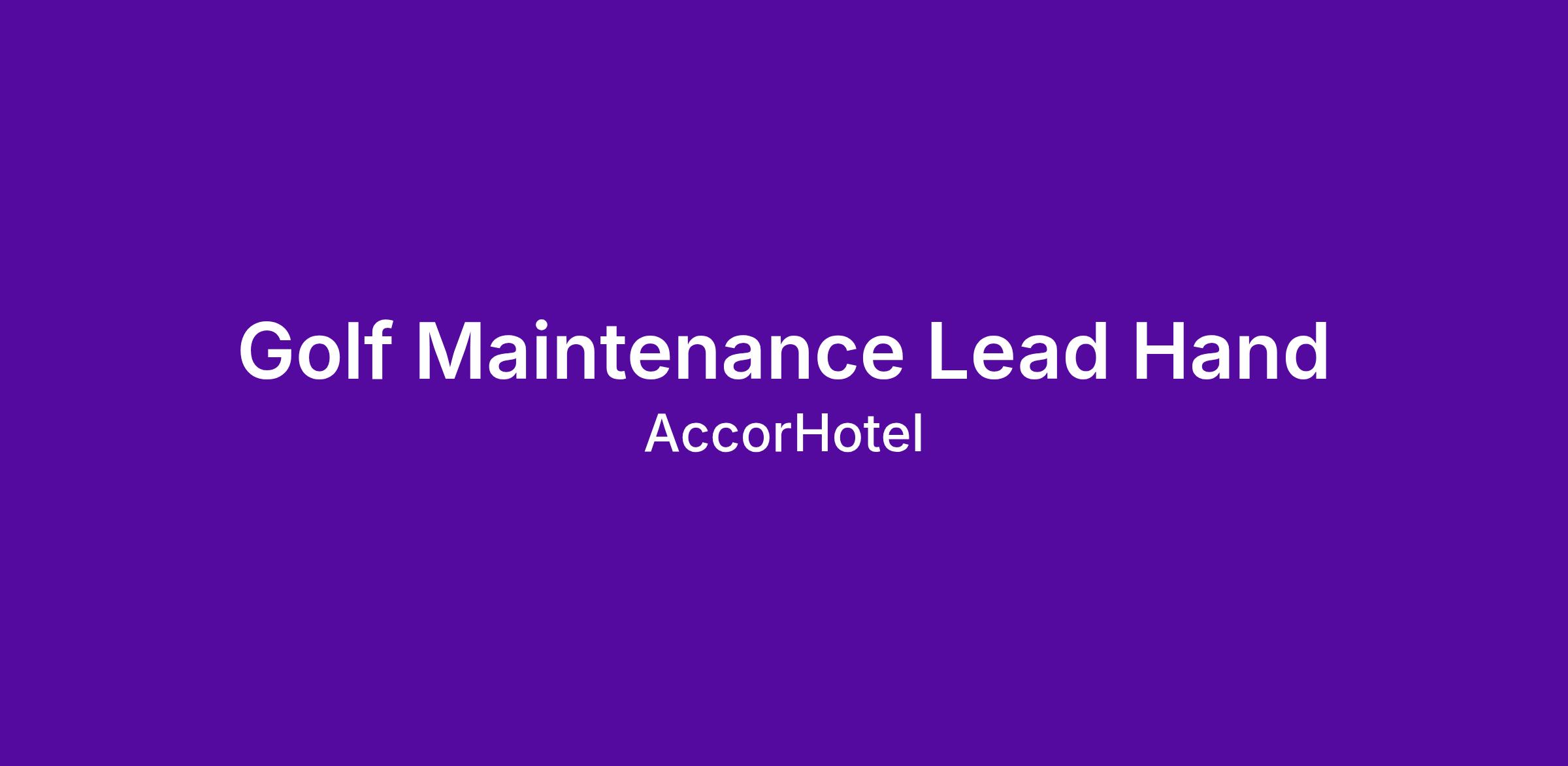 Golf Maintenance - Lead Hand