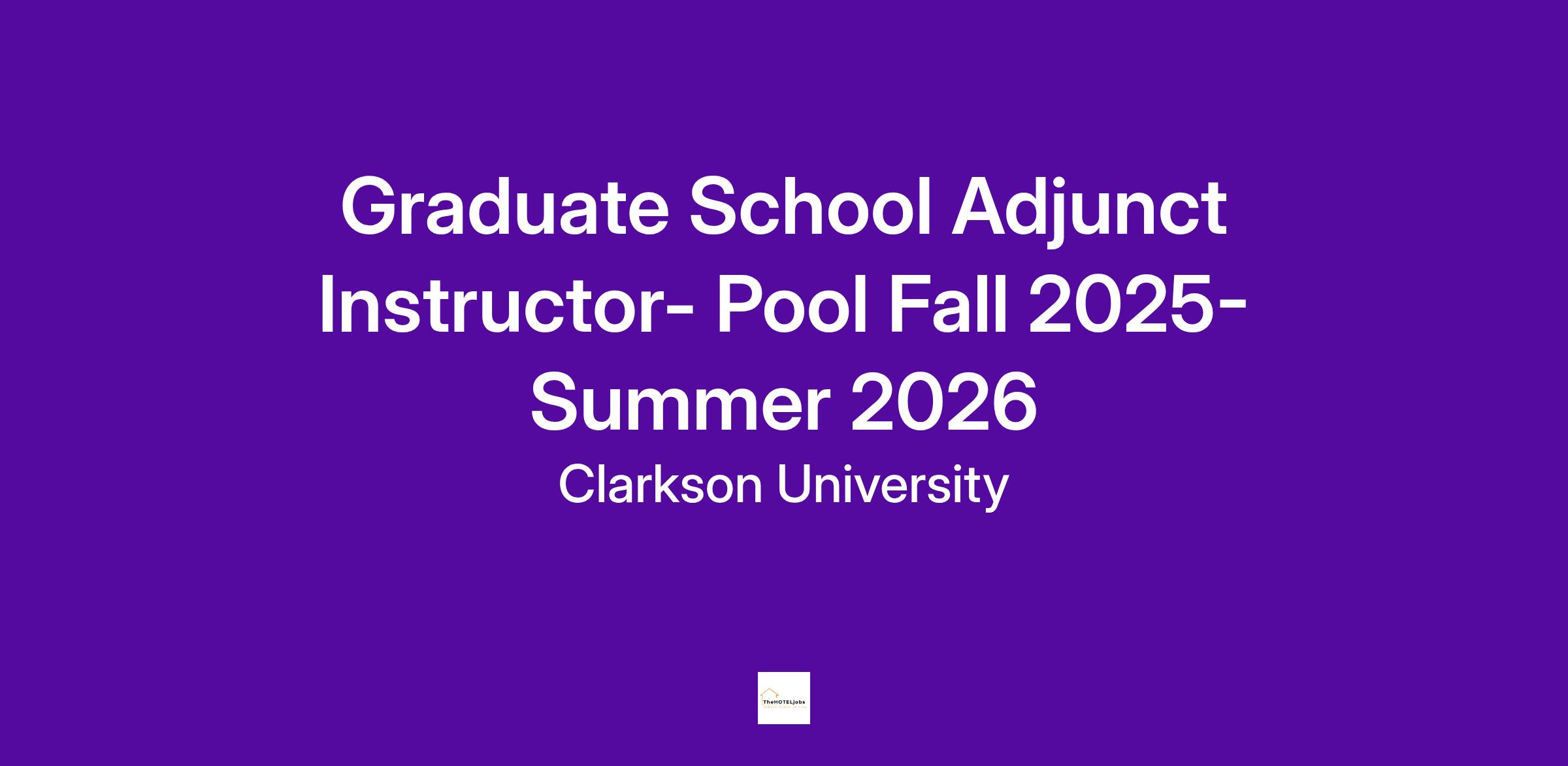 The Graduate School at Clarkson University seeks adjunct instructors in the areas of Engineering, Applied Sciences and Business as needed.