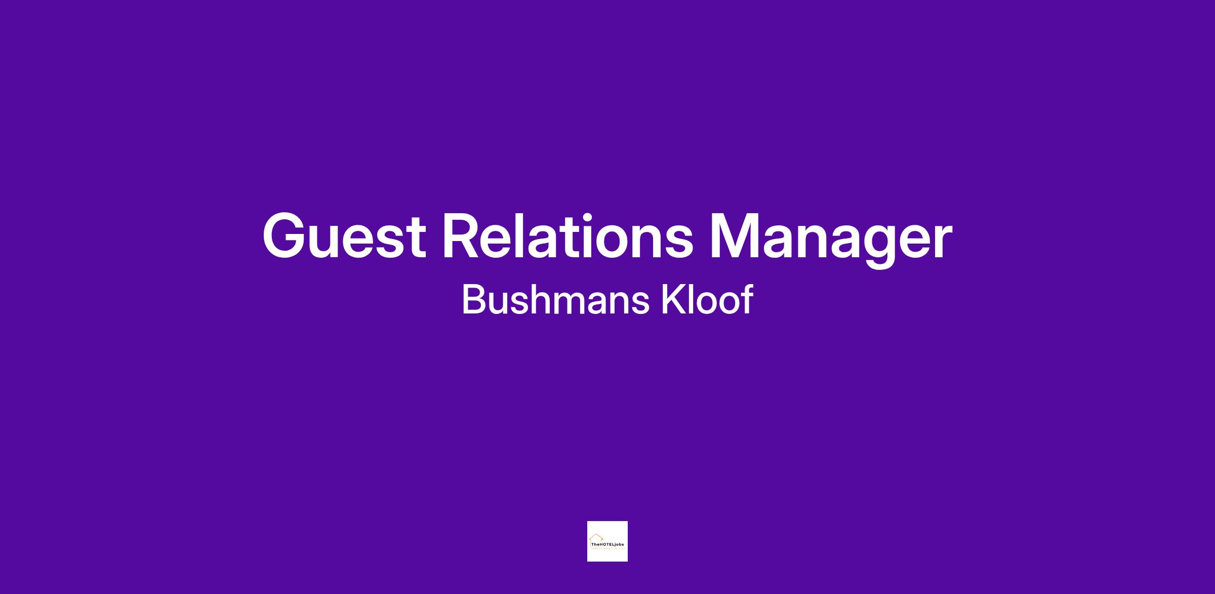 Please forward applications to: pandcofficer@bushmanskloof.co.z