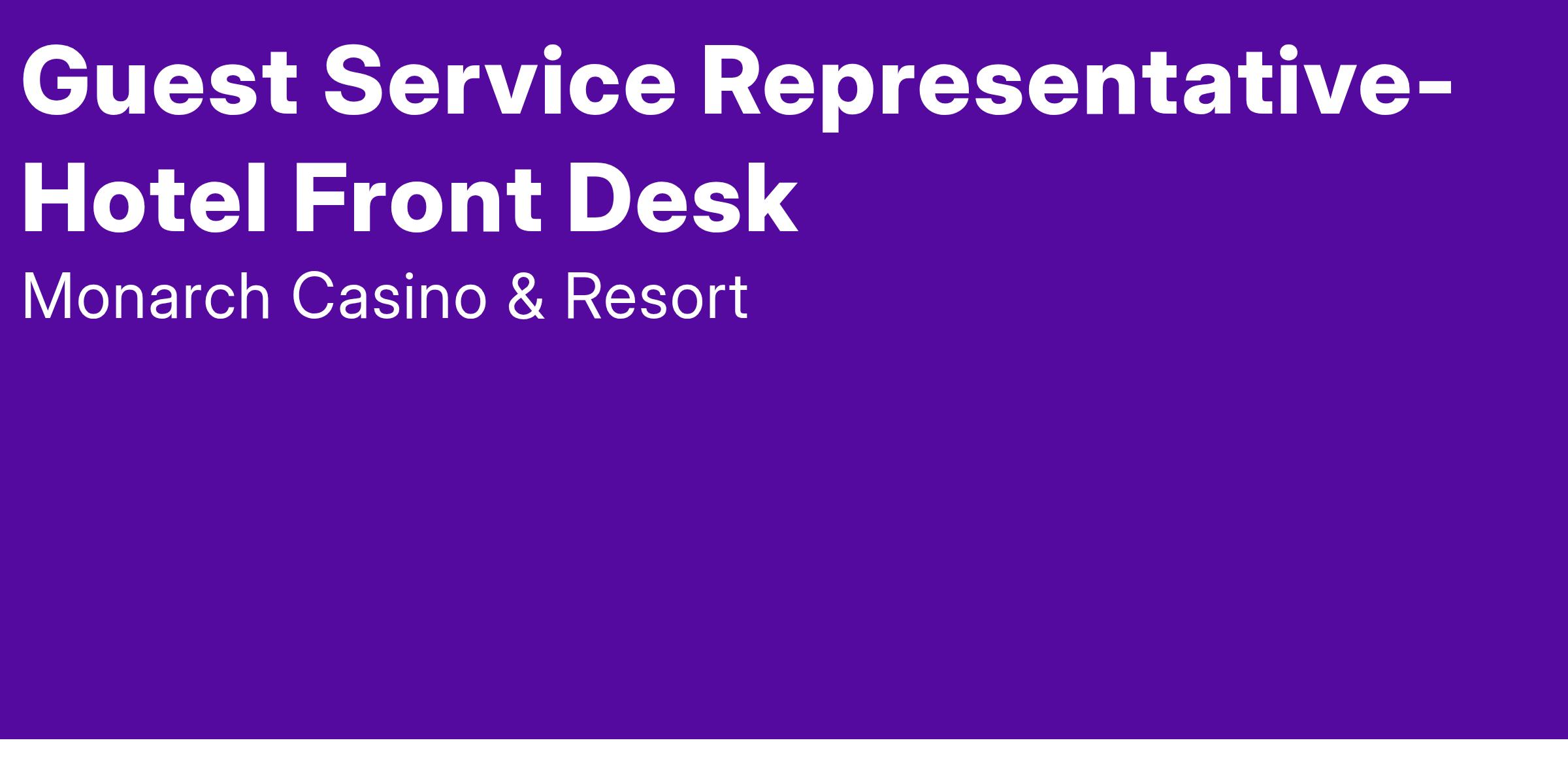 Come join Team Atlantis! We are currently accepting application for Hotel Guest Service Representative. Guest Service Representative is responsible for all activity involving Hotel guest check-in/check-out. They must provide further guest service by accurately taking and relaying guests' requests to other departments such as Housekeeping, Engineering, Bell/Valet, Security, Concierge, VIP Services, etc. Other departmental duties. All with a smile on their face!