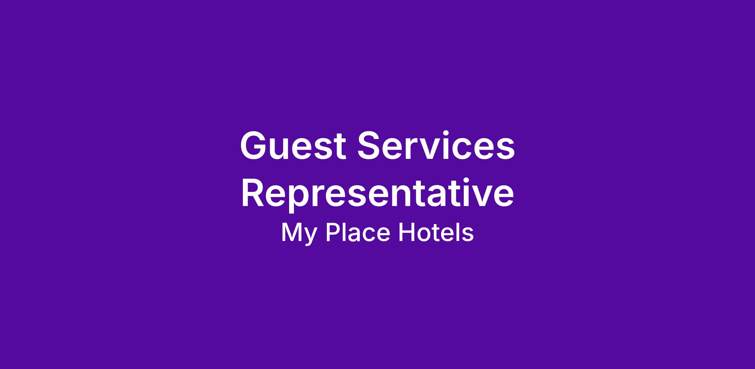 Are you ready to join a team dedicated to delivering exceptional guest experiences? My Place Hotel is looking for a motivated and detail-oriented Guest Services Representative. In this key role, you will be the central point of contact for guests, ensuring their stay is seamless from reservation to check-out. If you're an organized, dependable multitasker with a positive attitude and strong knowledge of the local area, this is the perfect opportunity for you!