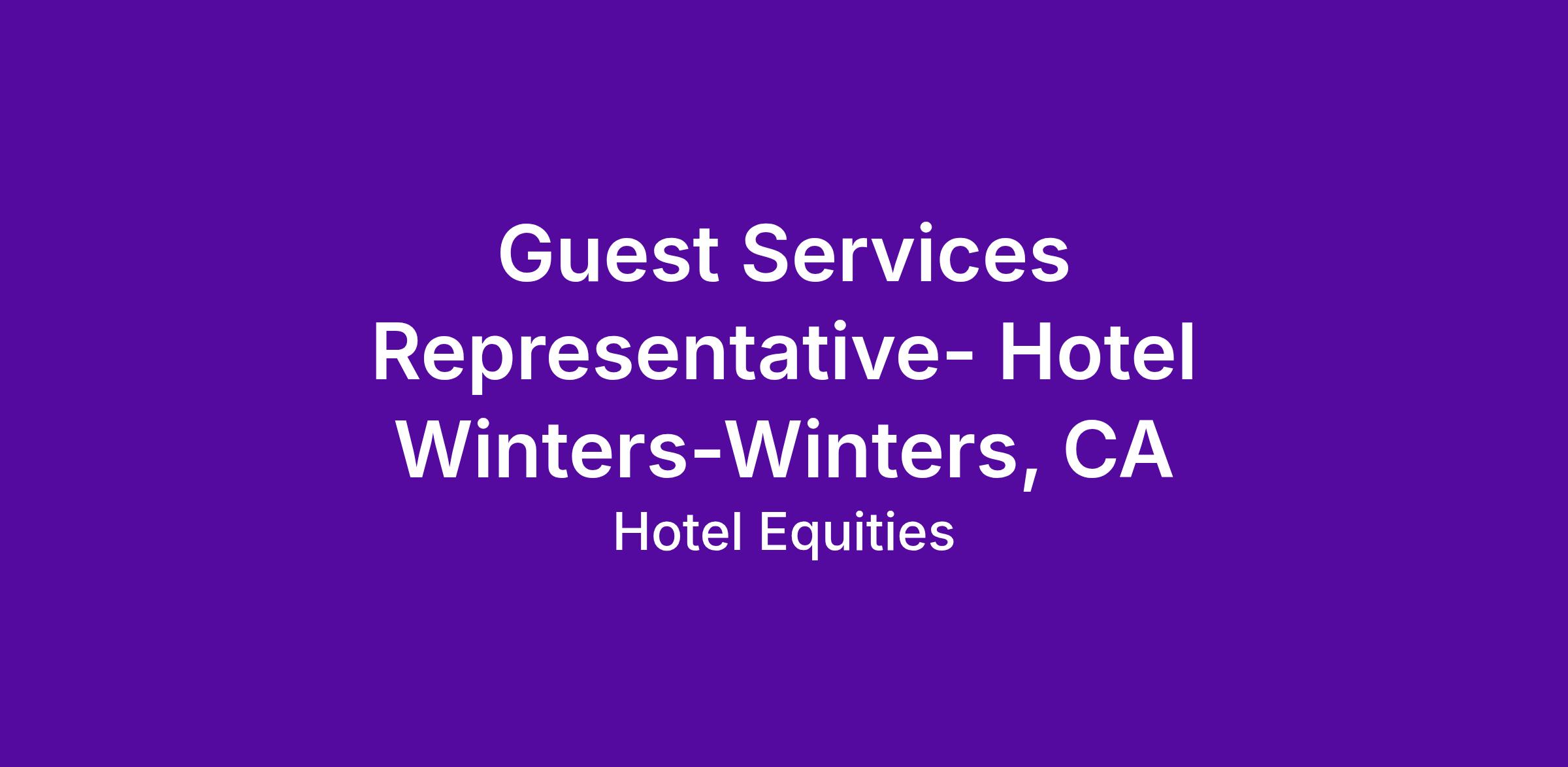 Hotel Equities, a multi-award-winning hotel development and hospitality management company, is currently searching for a remarkable Guest Service Representative for the Hotel Winters in Winters, CA