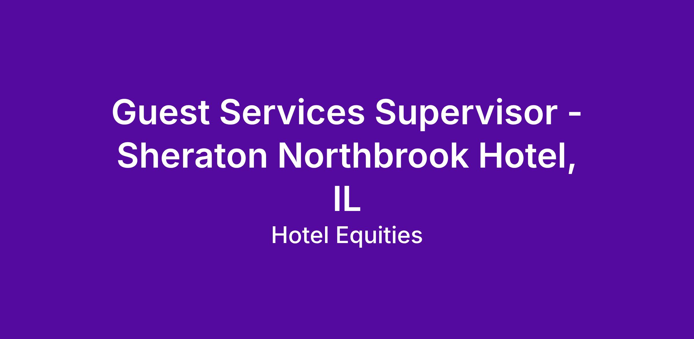The Sheraton Northbrook Hotel, Northbrook, Il 60062 has an immediate opening for an experienced Hotel Front Office Supervisor.