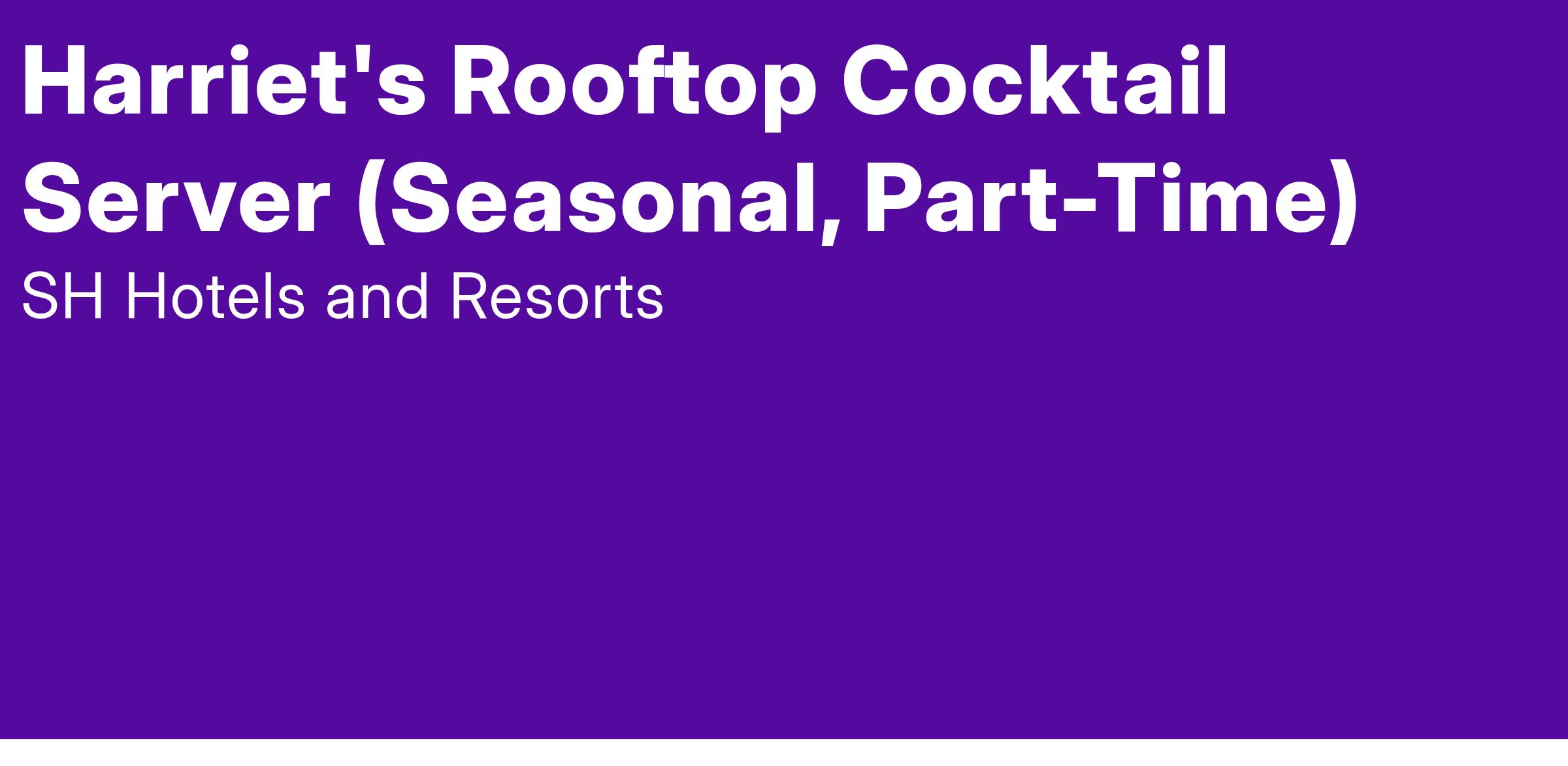 Life is precious including the experiences we have with food and the people we share those experiences with. The Food & Beverage team at 1 Hotel Toronto understand (and value) that thoughtful ingredients and extraordinary people are both required to execute an exquisite affair for our guests. Our team is currently seeking a hard-working, attentive Cocktail Server for Harriet's Rooftop. In this role, you'll relish in the thought of executing the perfect experience for our guests, and may even convince them to return.