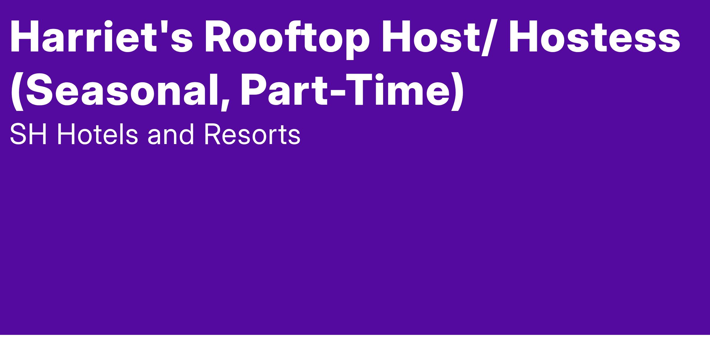 We’re currently seeking a Host/Hostess for Harriet's Rooftop who understands (and values) the importance of superior service, and leverages it to give guests an unforgettably warm and inspiring welcome. Our dream Host is essentially a brand ambassador, always reflecting our core values and going above and beyond to welcome every single guest into the restaurant. This is perfect role for people who love other people, and especially love helping guests feel welcome, relaxed, and excited about their experience.