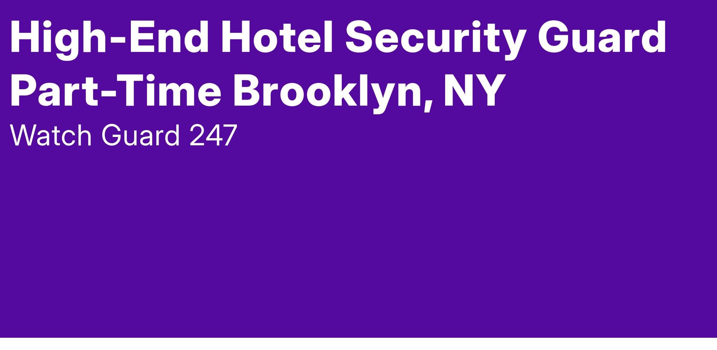 WATCH GUARD 24/7 is one of the fastest-growing security guard providers in the New York Metropolitan area. We are looking for dedicated professionals interested in a a part-time Security position at one of our premier luxury client locations in Brooklyn.