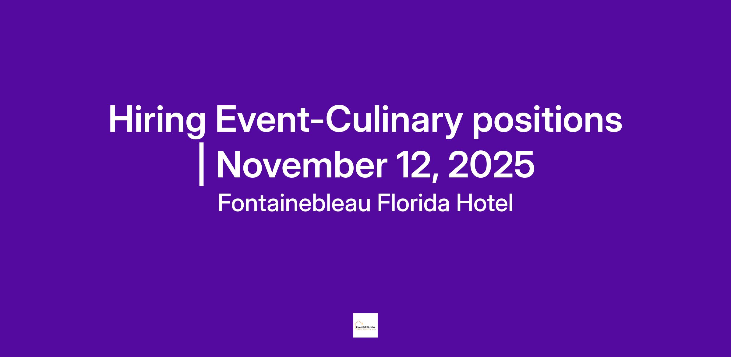 Join us on Wednesday, November 12, 2025 from 1:00 pm - 4:00 pm at our Hiring Event located in our Human Resources Lobby located at 4441 Collins Ave, Miami Beach Florida, 33140.