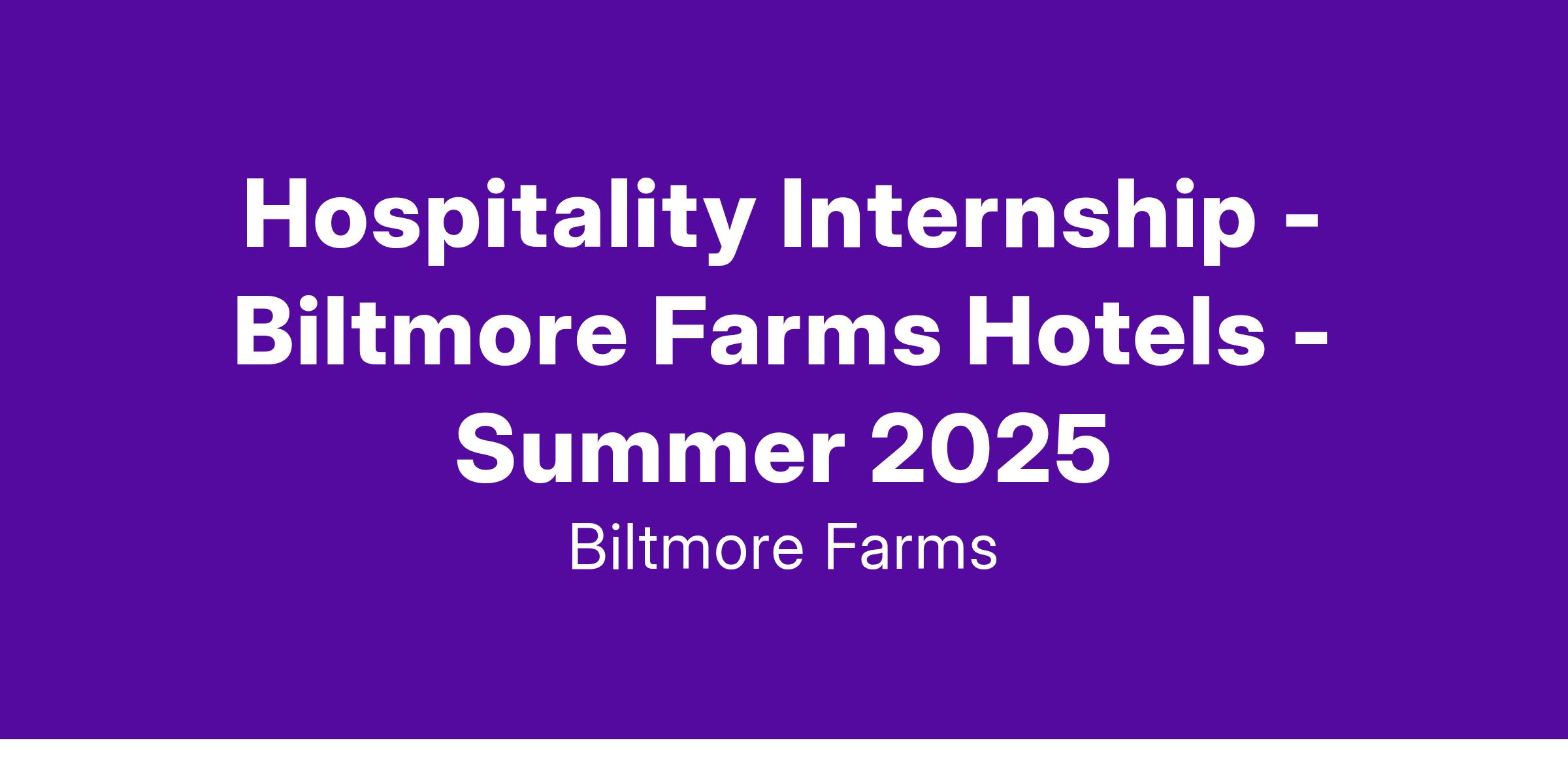 Hospitality Internship - Biltmore Farms Hotels - Summer 2025