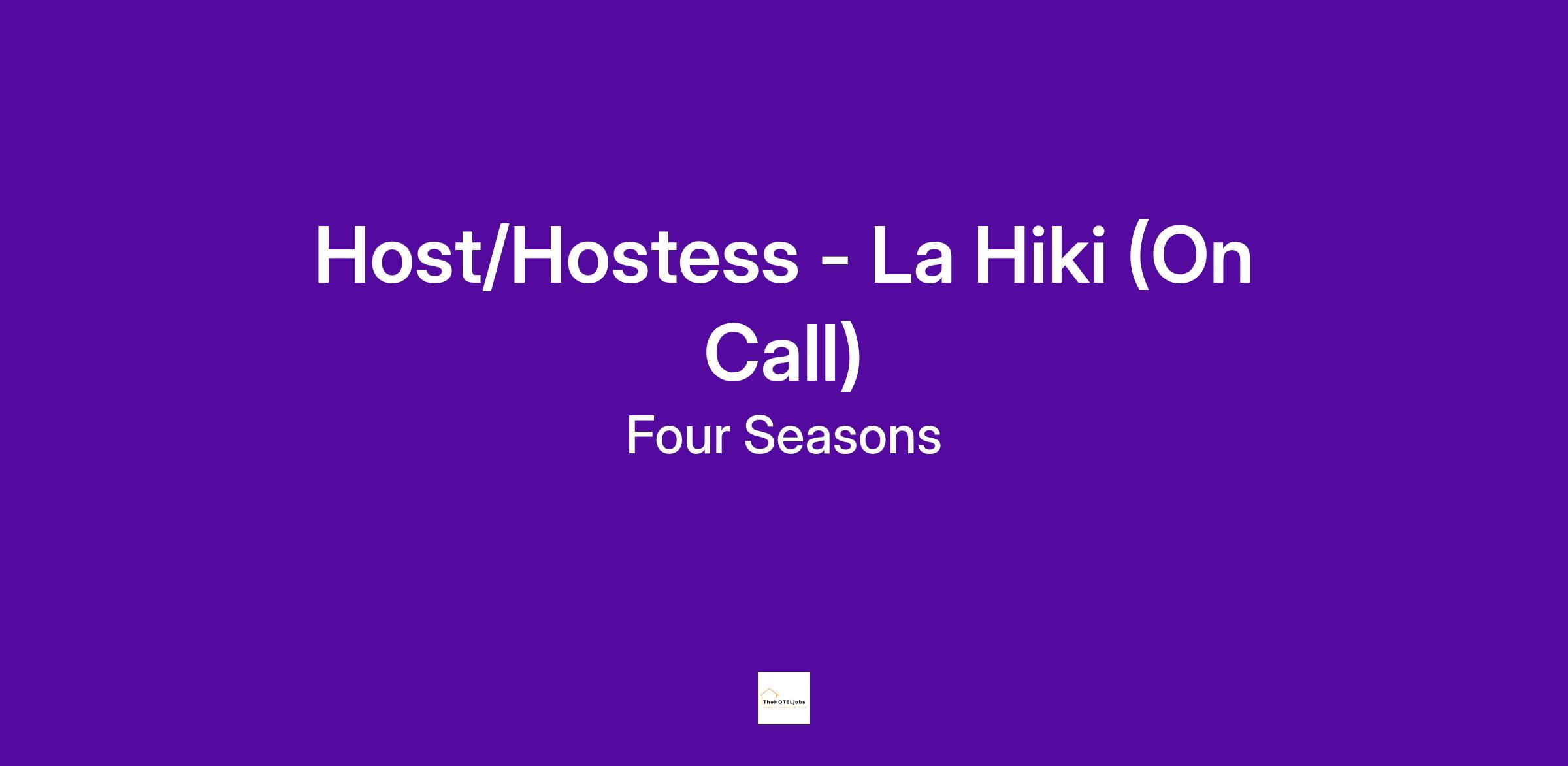 The On Call Host/Hostess - La Hiki reports to the La Hiki General Manager and is responsible greeting the guest, seating, bidding farewell, answering telephone and taking reservations, and coordinating end of shift reservation data. We are looking for multiple Hosts.