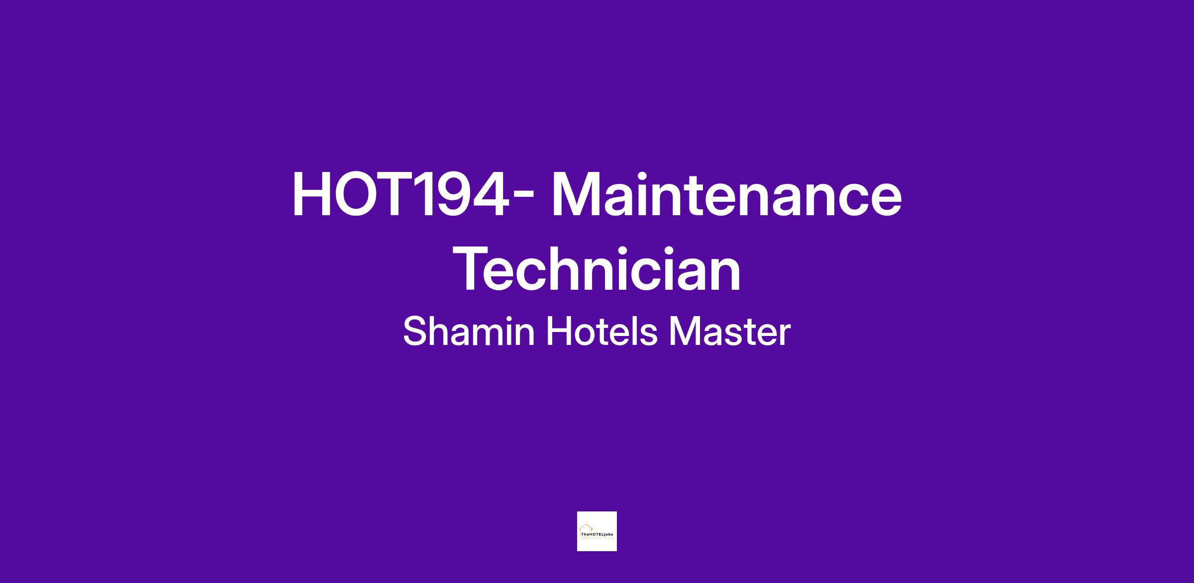 Job Title: Hotel Maintenance Technician
