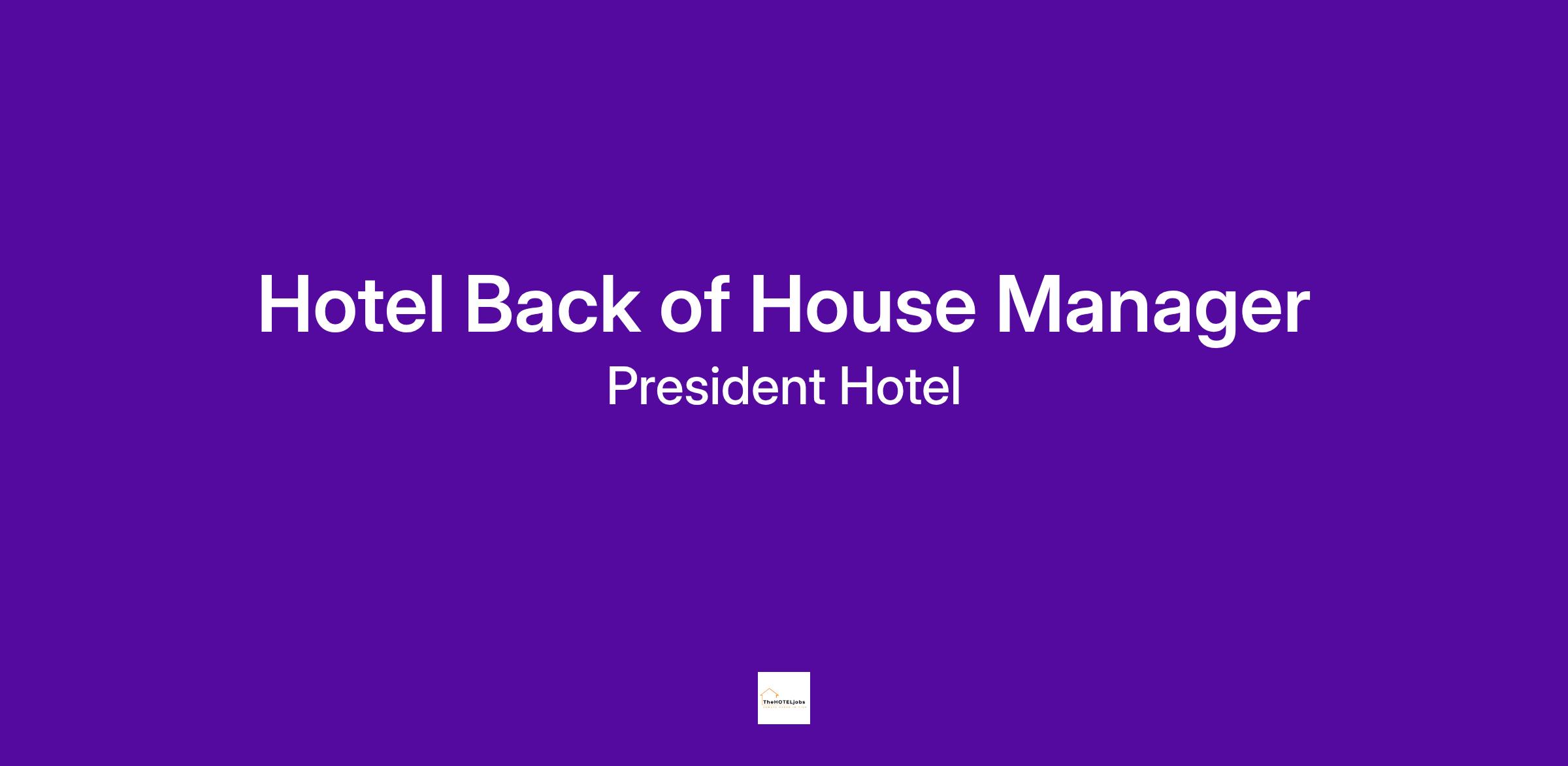 The President Hotel is entering an exciting phase of growth and transformation, and we are creating a new opportunity for a Back of House Manager to join our team.