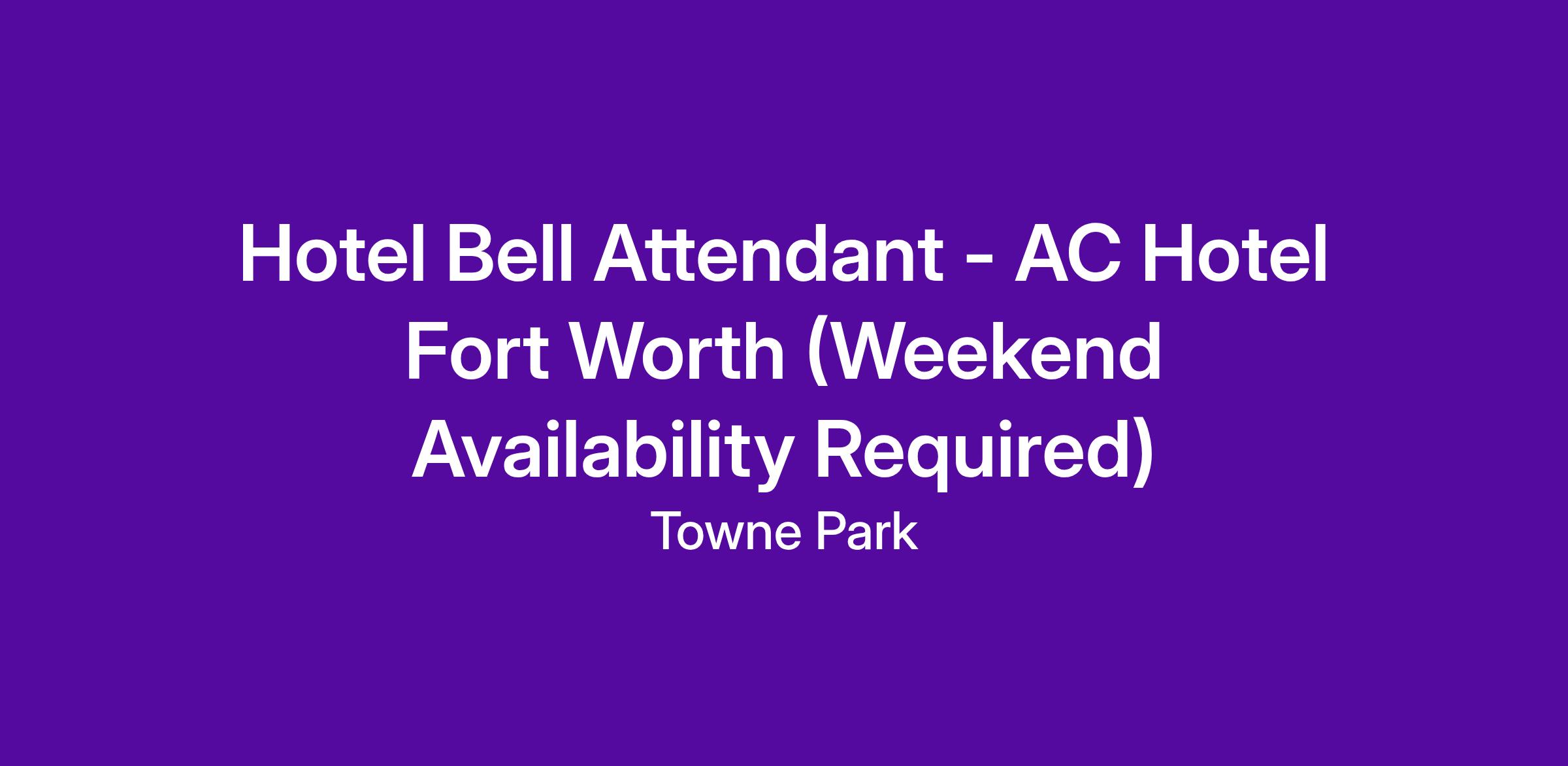 Work Schedule: The work schedule for this position is dependent upon hotel business volumes which will be discussed during the interview. Open Availability recommended with required Weekend availability(Friday - Sunday).