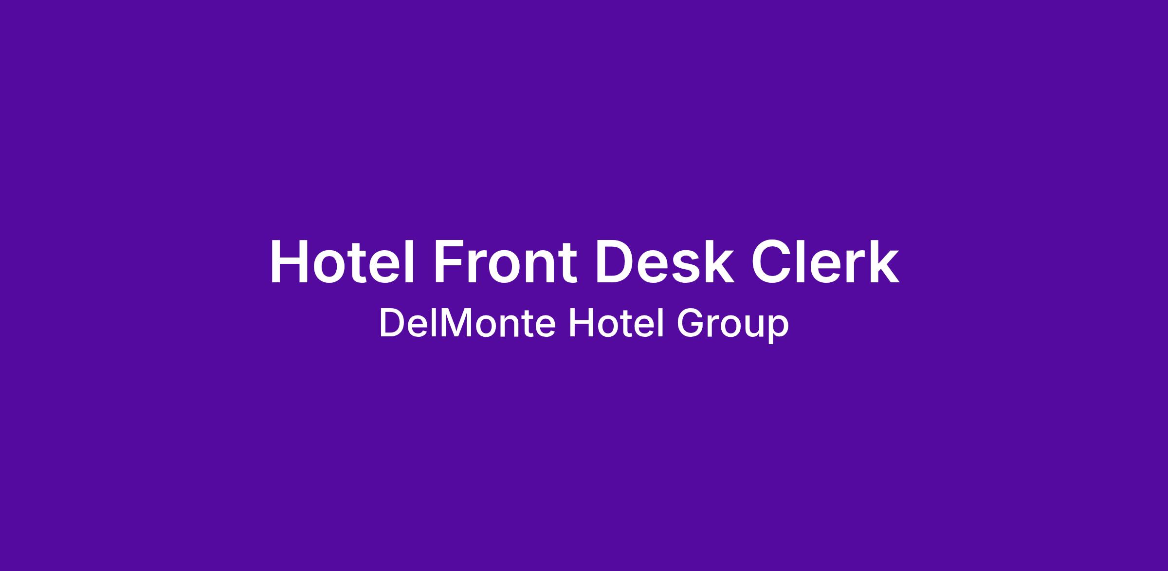 Are you ready to apply your expertise to a rewarding career with a leader in the hospitality industry? Join the DelMonte Hotel Group team! We are currently seeking experienced and driven candidates just like you to serve as a Front Desk Clerk.