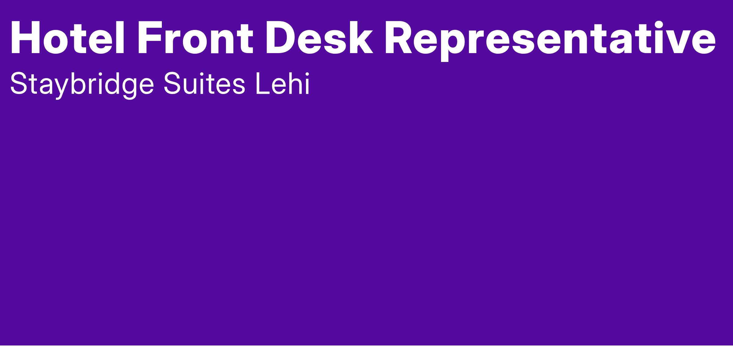 Staybridge Suites in Lehi, UT is looking to hire a part-time Hotel Front Desk Representative to join our hospitality team. Are you super friendly? Would you like to join a company with a team that feels like a family? Are you looking for an entry-level role that requires no experience? If so, please read on!
