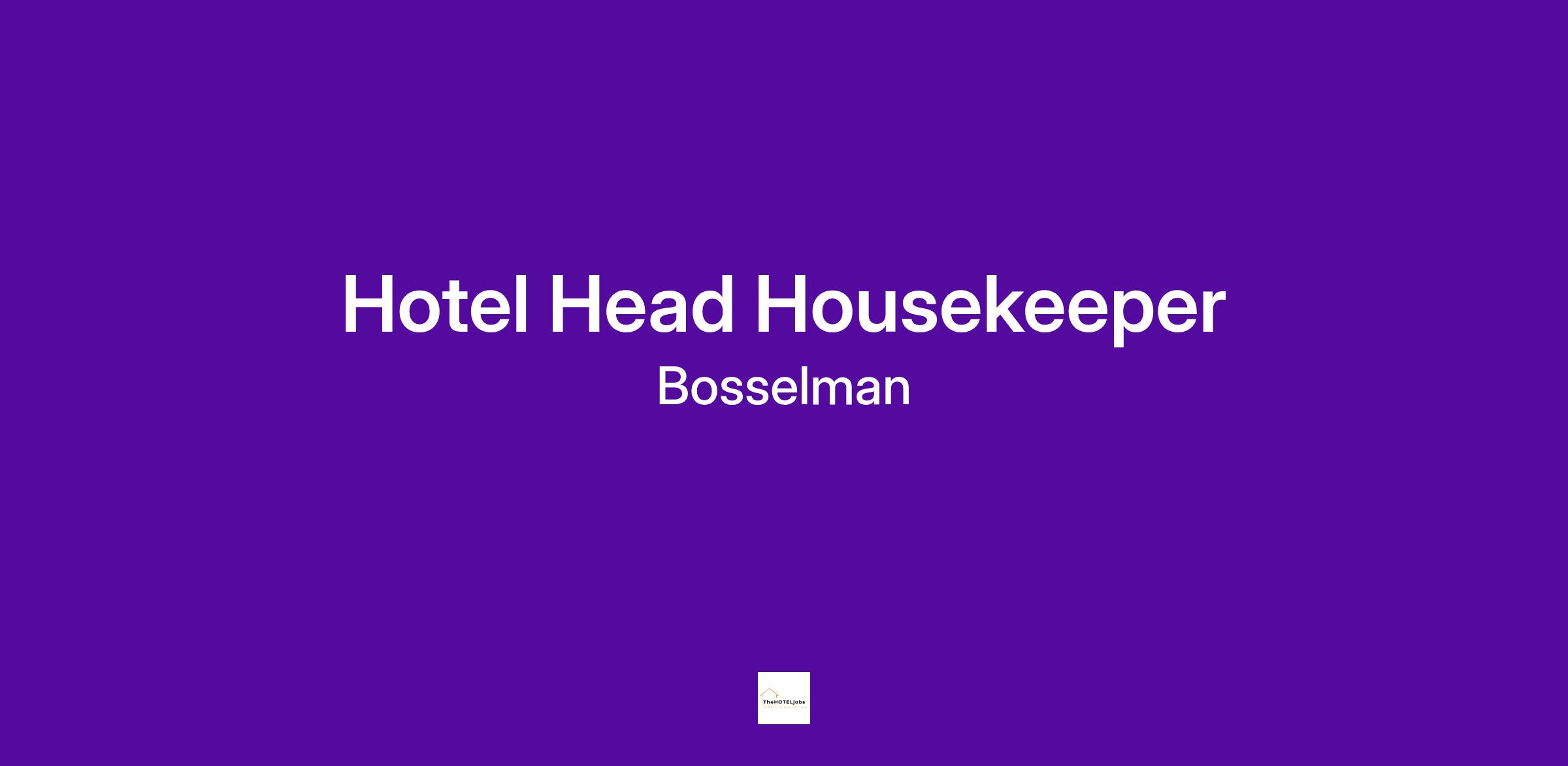 The Head Housekeeper is responsible for maintaining cleanliness of the Hotel at a level consistent with Bosselman standards.