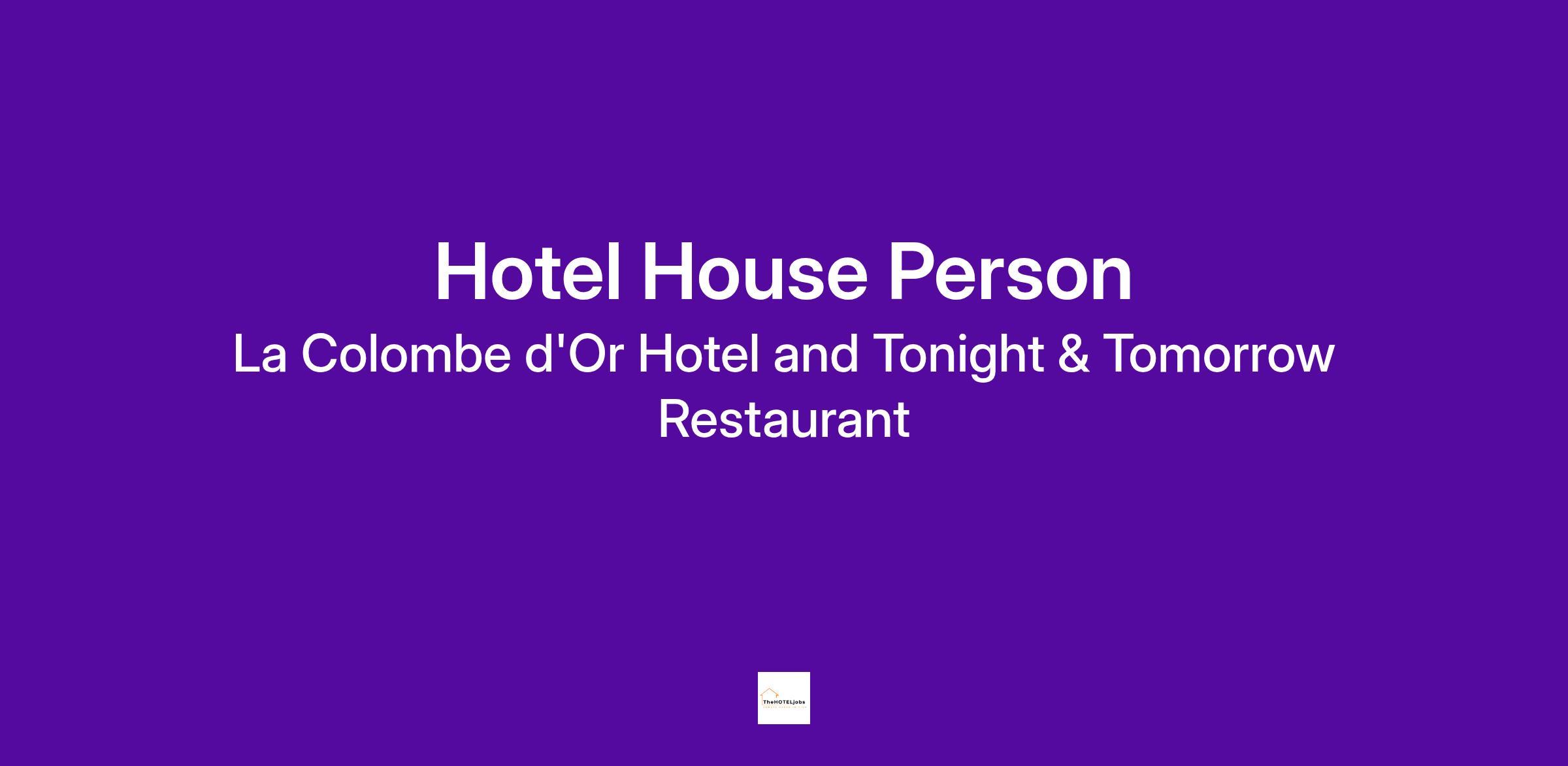 The House person is an integral part of the Housekeeping Team who collectively is responsible for the cleanliness and attention to detail of the hotel.