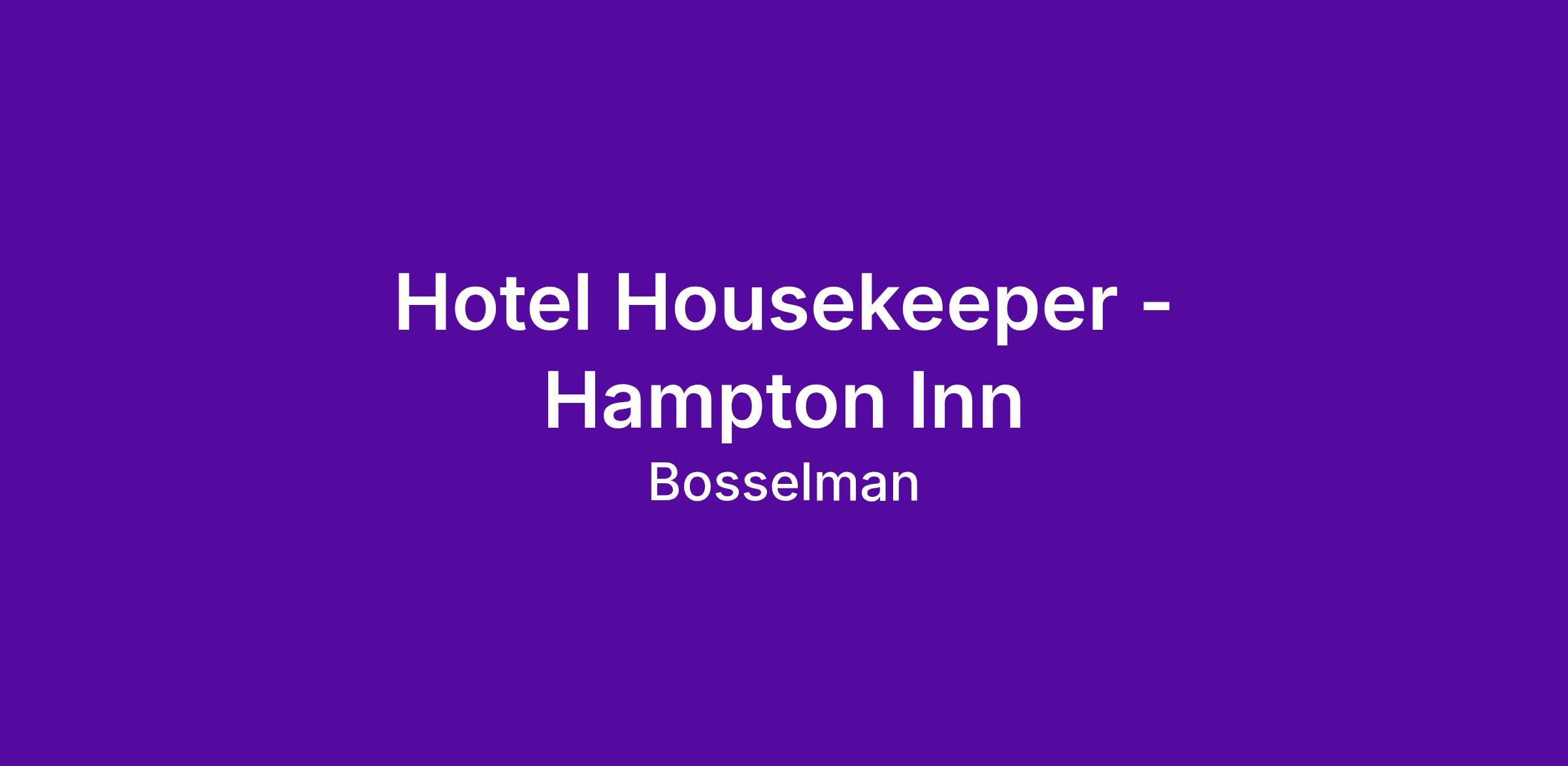 The Housekeeper is responsible for maintaining cleanliness of the Motel at a level consistent with Bosselman and brand standards.