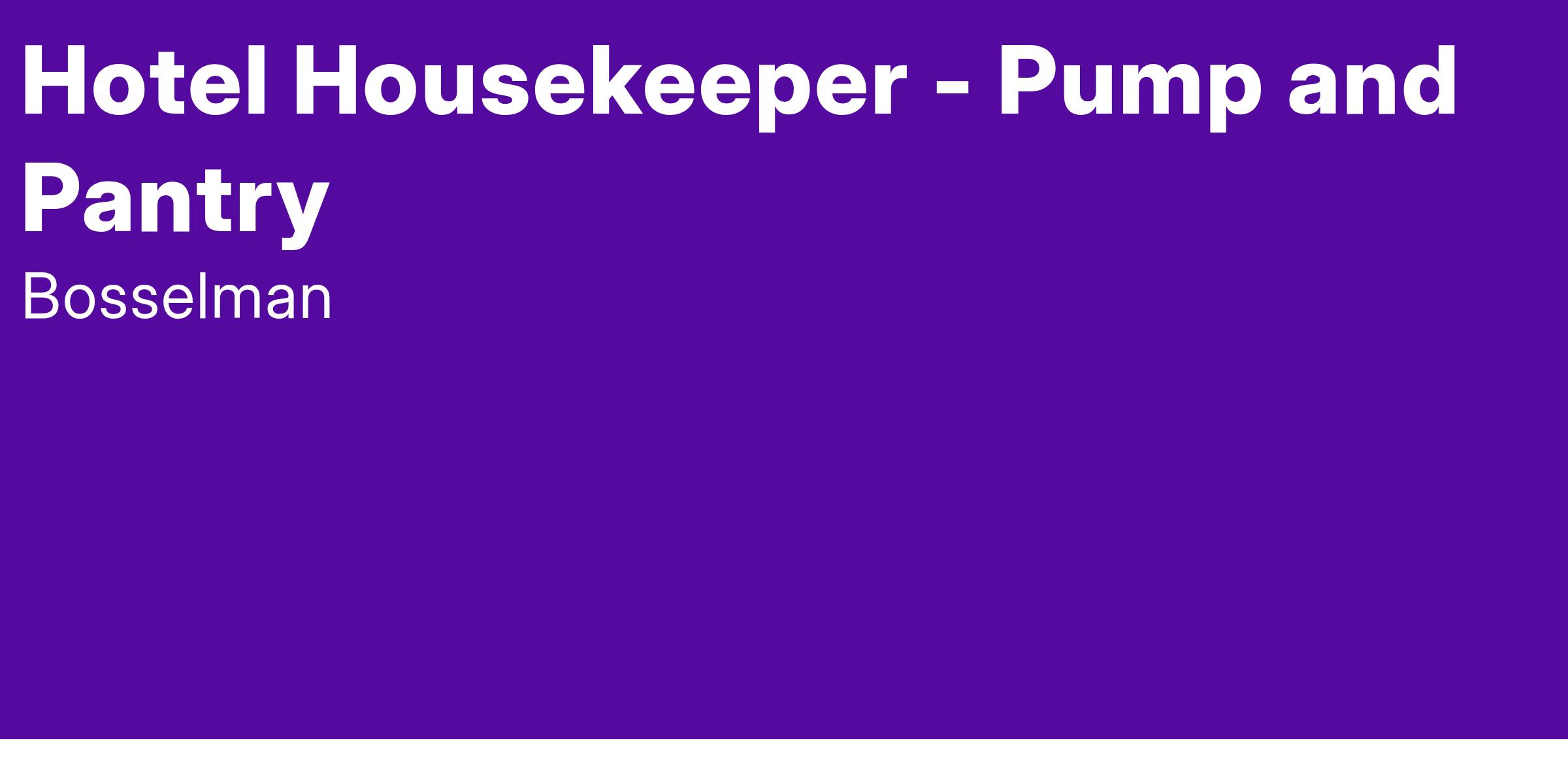 Hotel Housekeeper - Pump and Pantry
