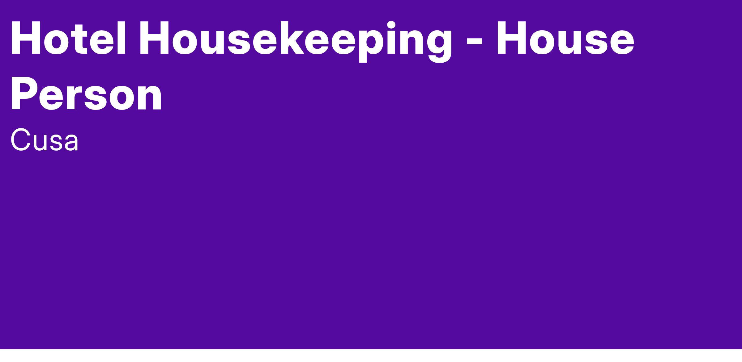 Our House Person will demonstrate the ability to work independently while maintaining the public spaces of the hotel while providing excellent guest service. The position will also be responsible to assist the housekeeping staff to assure all areas of the hotel are clean and safe for guest use. Guest security and safety is most important to CUSA, LLC and the House Person will be a key part of maintaining the safety of the property. This position is also required to answer guest questions about the hotel or make recommendations about the local area. Completes their job duties in conjunction with the hotel's policy and procedures. This is a part time position 20-25 hours a week