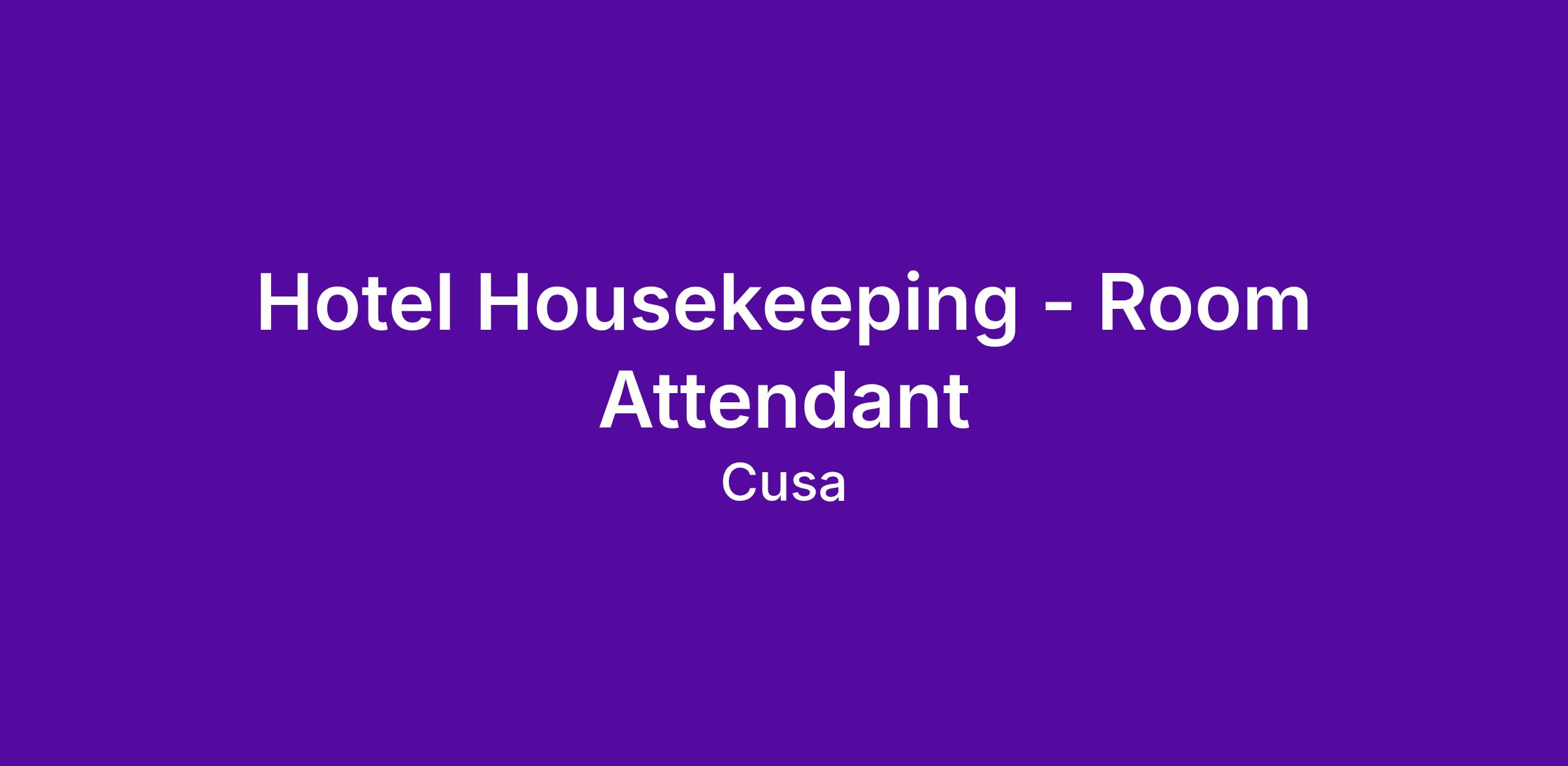CUSA, LLC, one of the most successful hotel management companies in the industry is searching for a Housekeeper/Room Attendant for a limited service hotel. When joining our team, you will be joining a company who prides themselves with providing exceptional guest service, recognizing our associates as our best asset, and providing value to our business partners and owners.