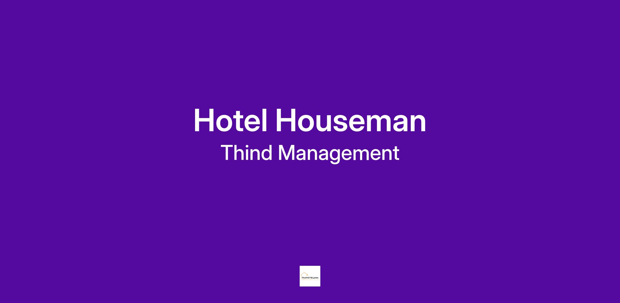 IntroductionWelcome to Thind Management, a family-owned management company where we strive to provide exceptional service and unforgettable experiences to our guests at our properties. With a passion for hospitality and a commitment to teach, we at Thind Management strive to share our knowledge with team members to reach new heights. We live and breathe Thind’s motto “We’ll Take It from Here”. Our team of experienced leaders are dedicated to delivering the highest standards of training, providing tools, and ensuring professional growth of our team members.Job SummaryWe are seeking a dedicated and reliable houseman to join our team. The ideal candidate will be responsible for maintaining the cleanliness and order of our hotel’s public areas, supporting the housekeeping staff, and assisting with guest services. The houseman should have excellent attention to detail and the ability to work efficiently in a fast-paced environment while following company and brand standards.Core Job Responsibilities & DutiesPublic Area Maintenance- Maintain cleanliness and order of all public areas, including lobbies, corridors, and restrooms.