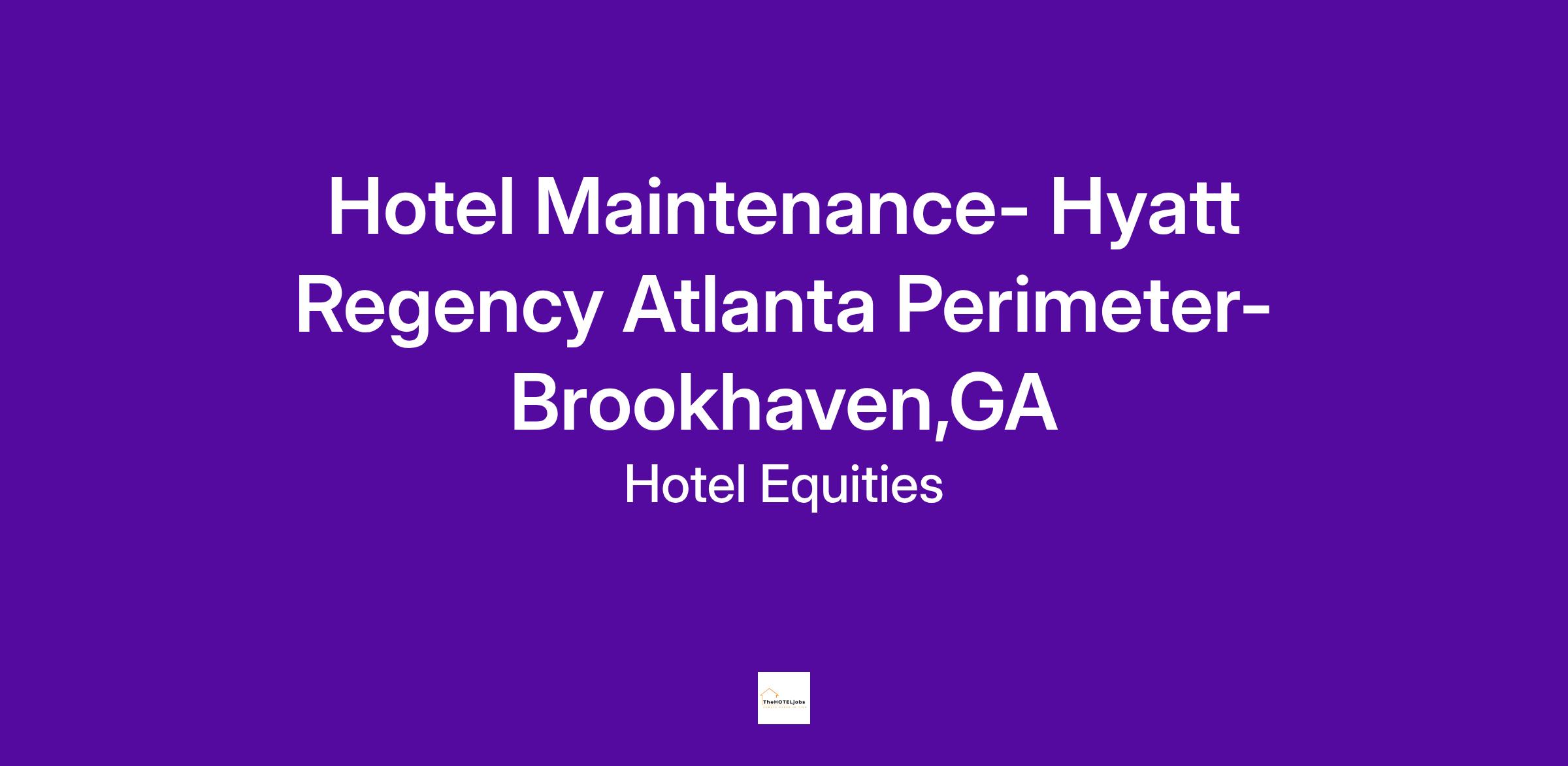 Greenwood Hospitality & Hotel Equities, a multi-award-winning hotel development and hospitality management company, is currently searching for a remarkable Maintenance at The Hyatt Regency Atlanta Perimeter, Brookhaven, GA