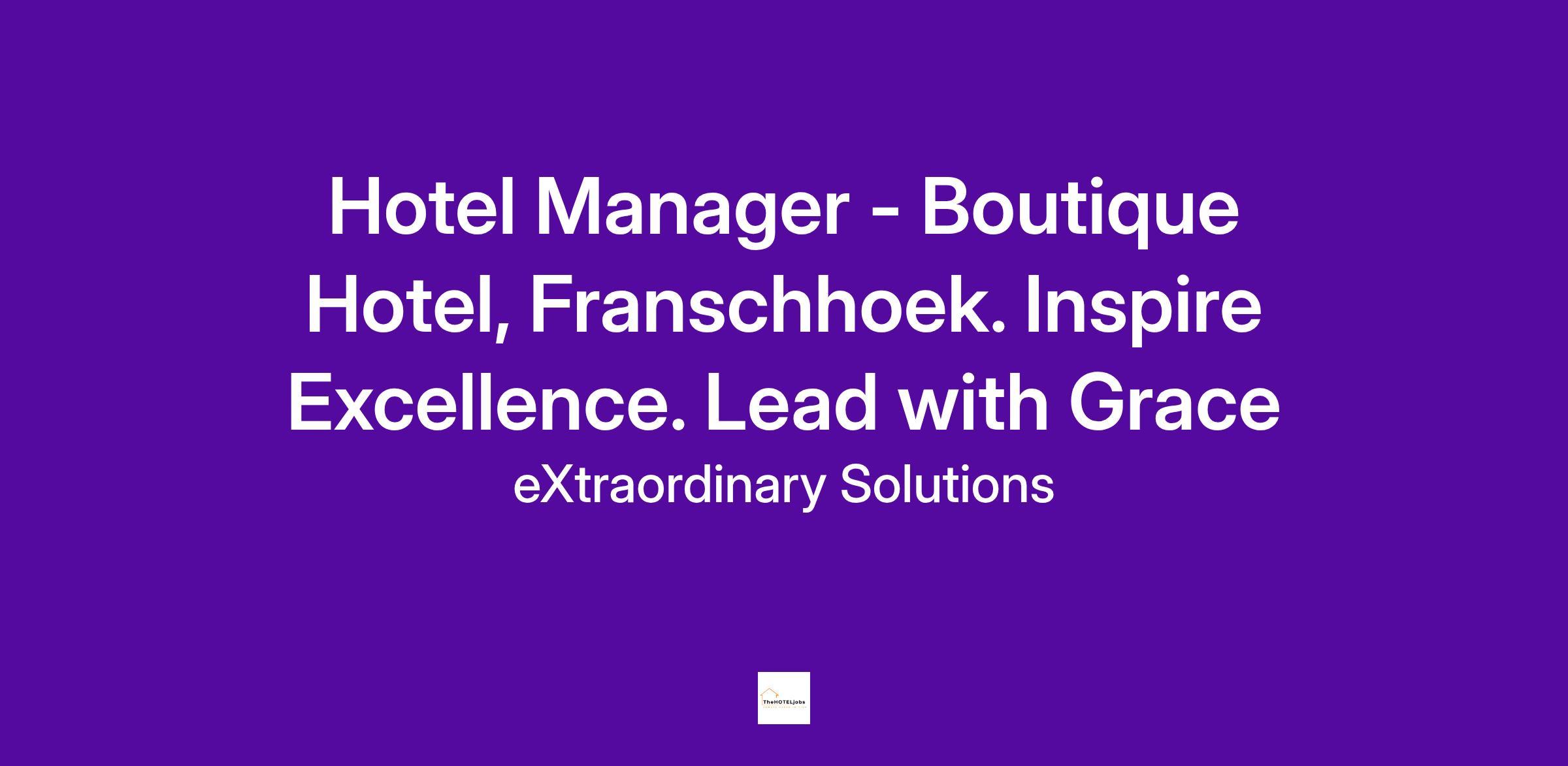 HOTEL MANAGER – FRANSCHHOEK, WESTERN CAPE