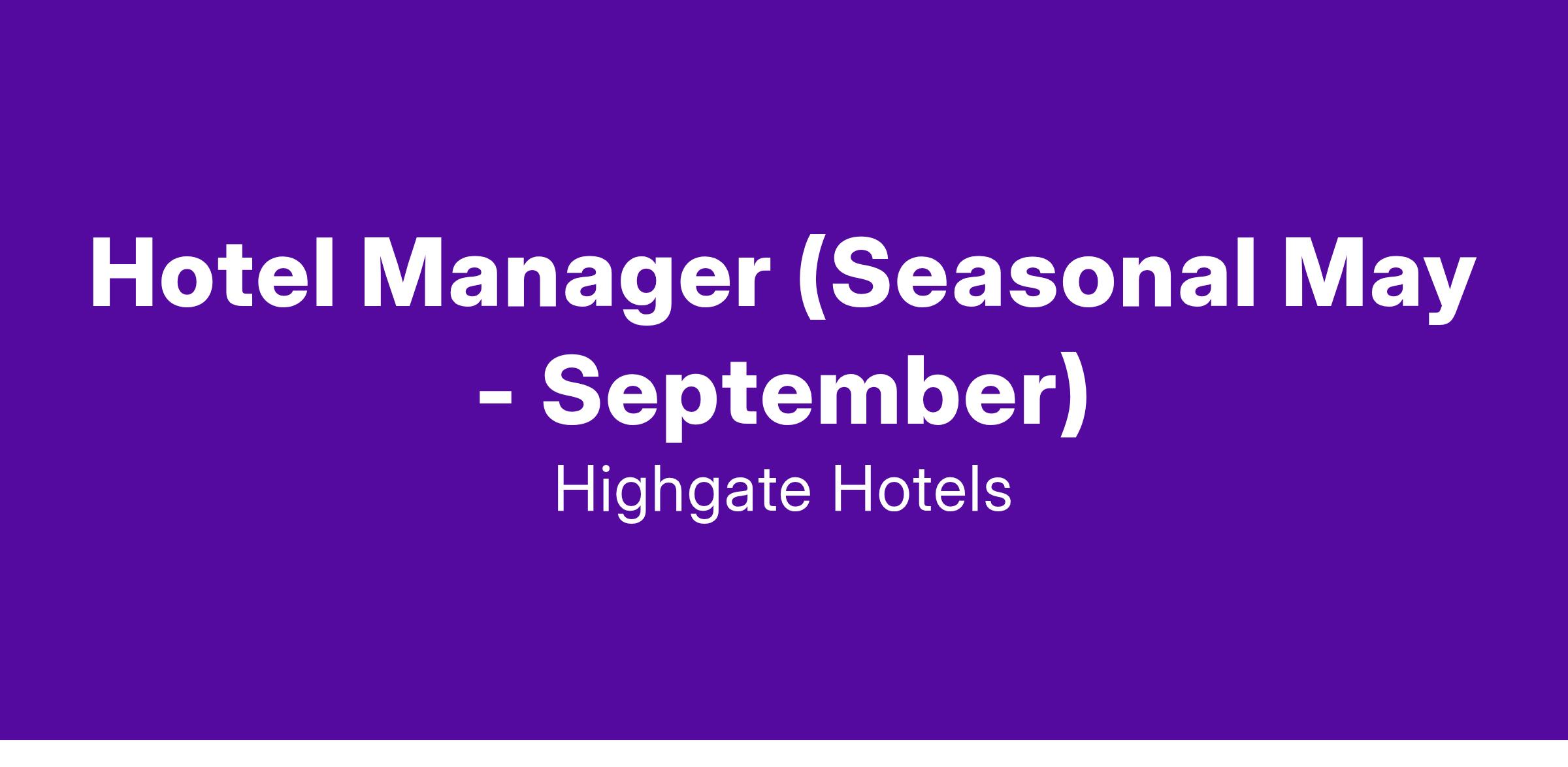 Hotel Manager (Seasonal May - September)