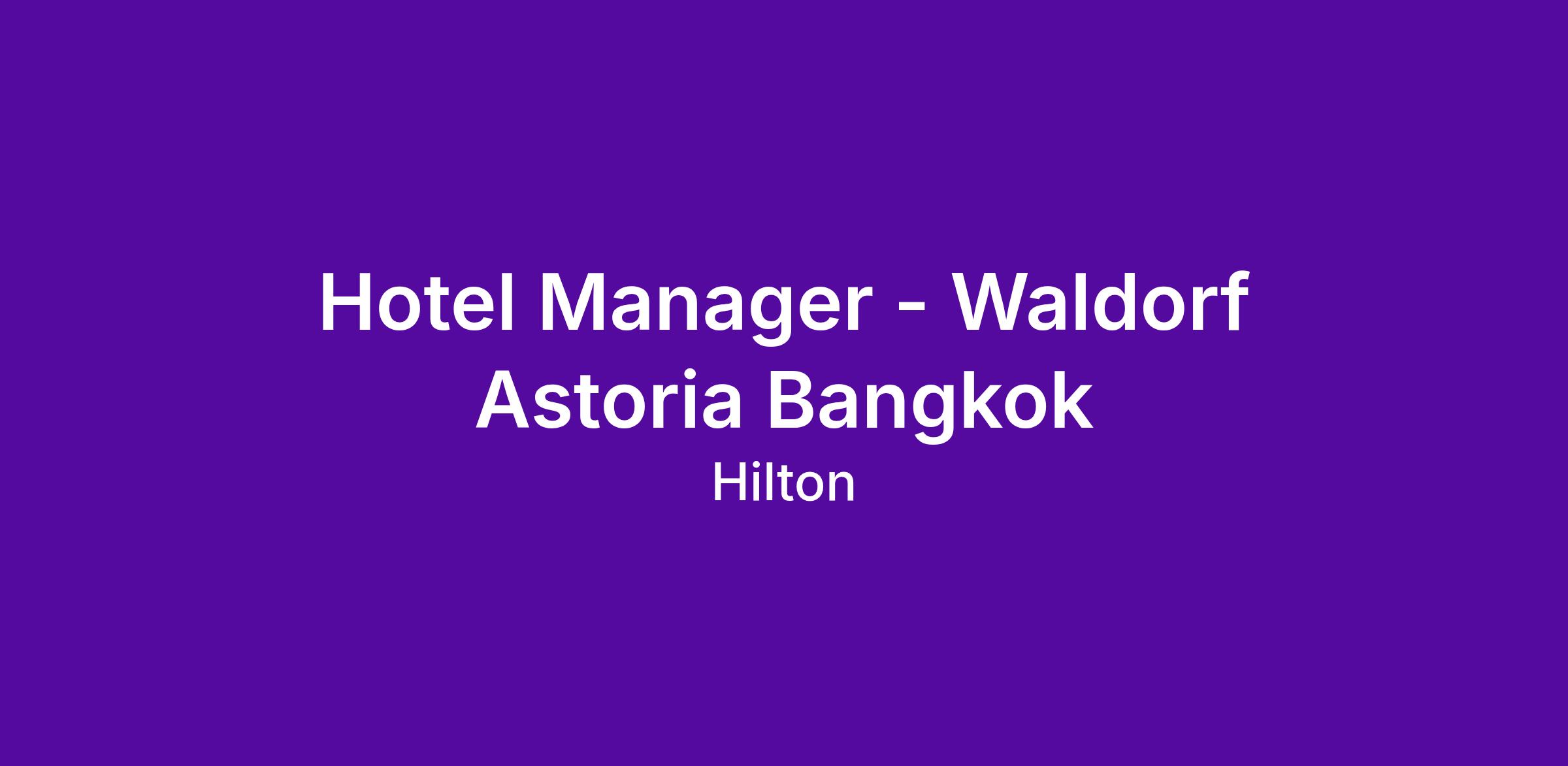 As the Hotel Manager of Waldorf Astoria Bangkok, you will be the custodian of our brand’s legacy and pillars\: a refined haven for our guests, sincerely elegant service, and unforgettable experiences. You will be responsible for overseeing the daily operations of the hotel, lead a team of executives, inspiring a culture of excellence, and a guest experience that embodies our brand’s promise.