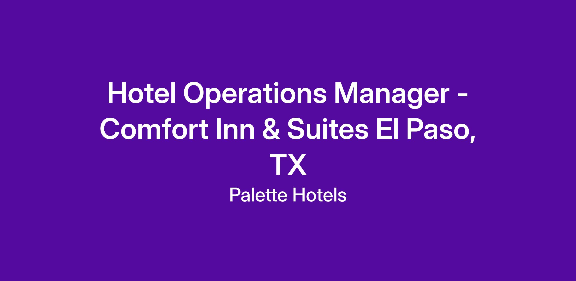 Position: Hotel Operations Manager - Comfort Inn & Suites El Paso, TX