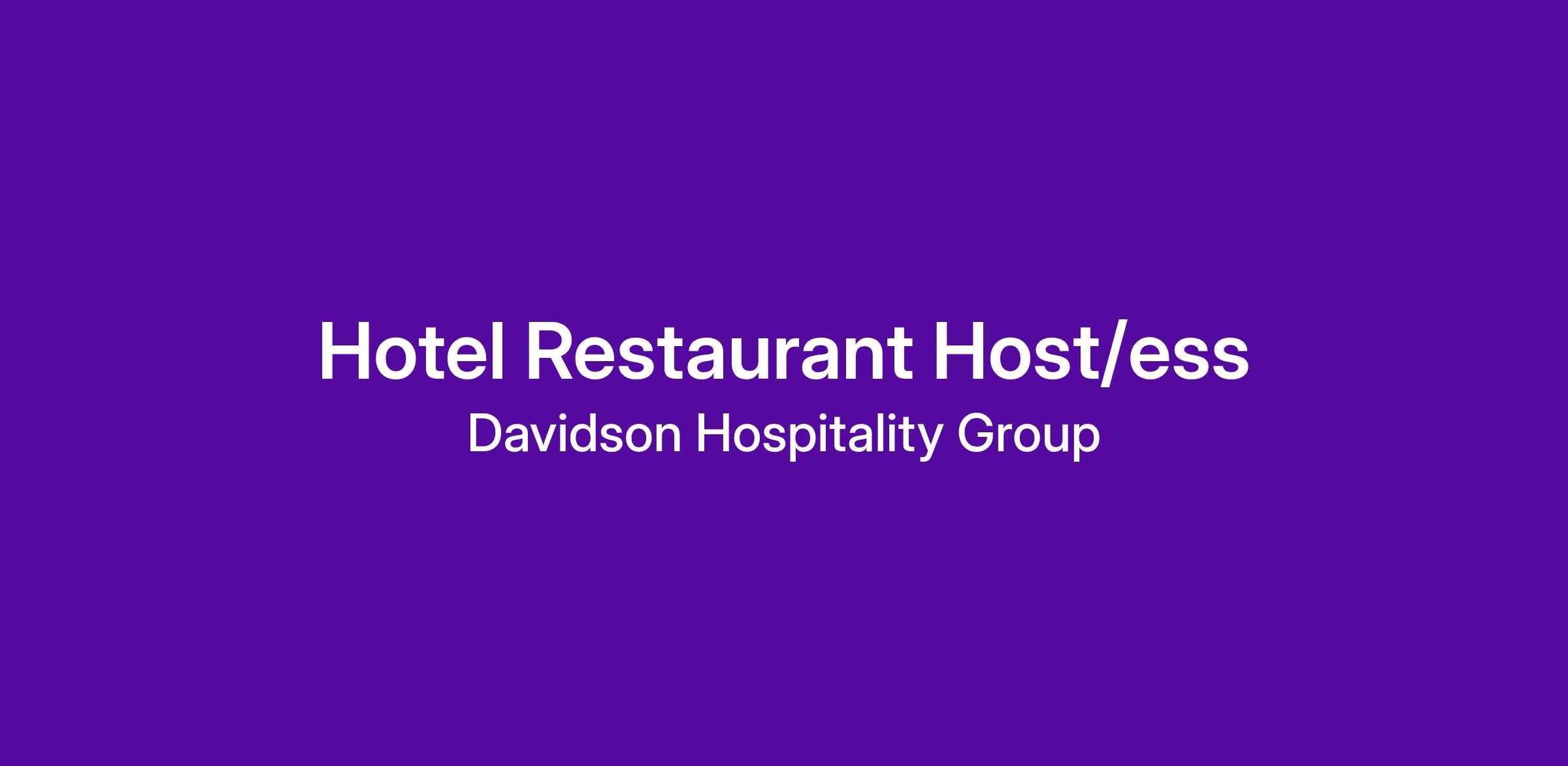 Davidson Hospitality is a drug free workplace. Pre-employment drug test and background check required. We participate in E-Verify.