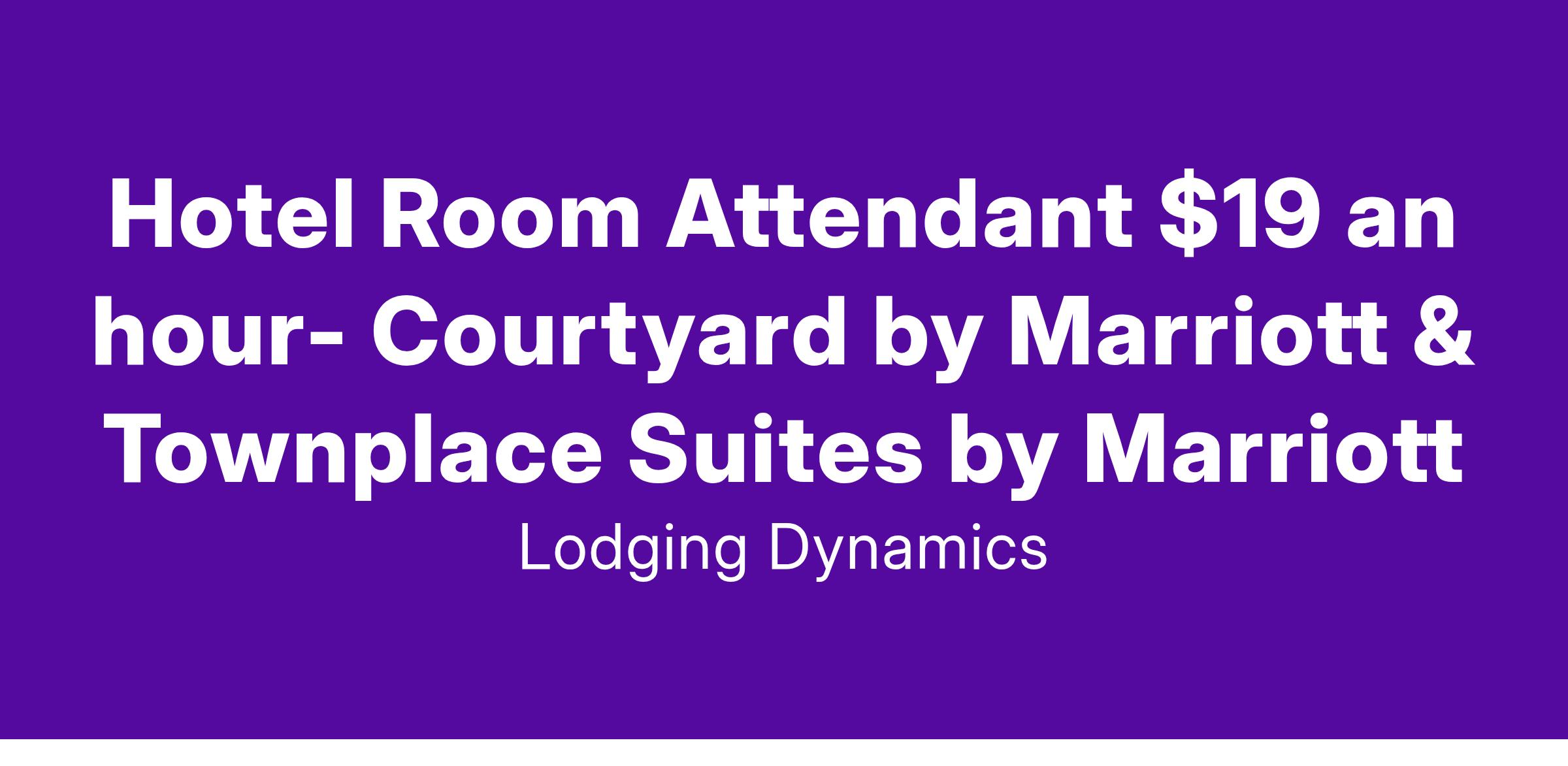 Location: Hotel Room Attendant $19 an hour- Courtyard by Marriott & Townplace Suites by Marriott