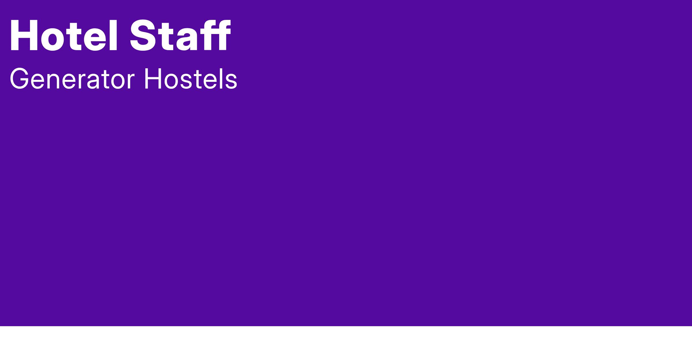 Our spaces are safe and seriously social, in the proudest part of the beating heart of the cities we love. Cultural action, creative pulse and an outstanding way to waste some of the finite time the universe has given you - that's what Generator offers. Holds true for staff and visitors equally, and while chic design is always the backdrop, every Generator in every destination reflects the unique beat of that city's heart.