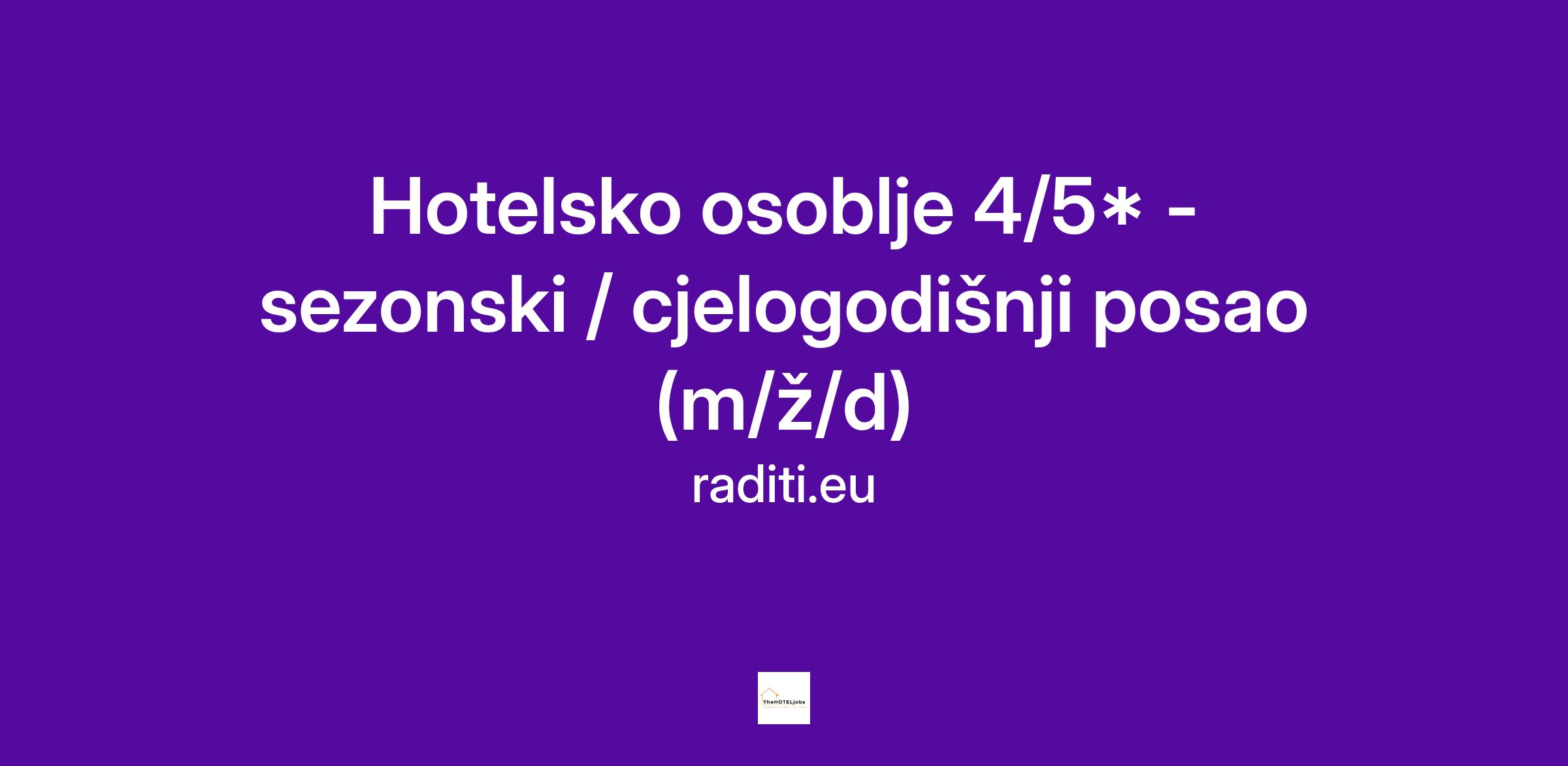 Za sezonu ili cjelogodišnji posao, u ime naših klijenata - hotela i restorana potreban je veći broj radnika na pozicijama: