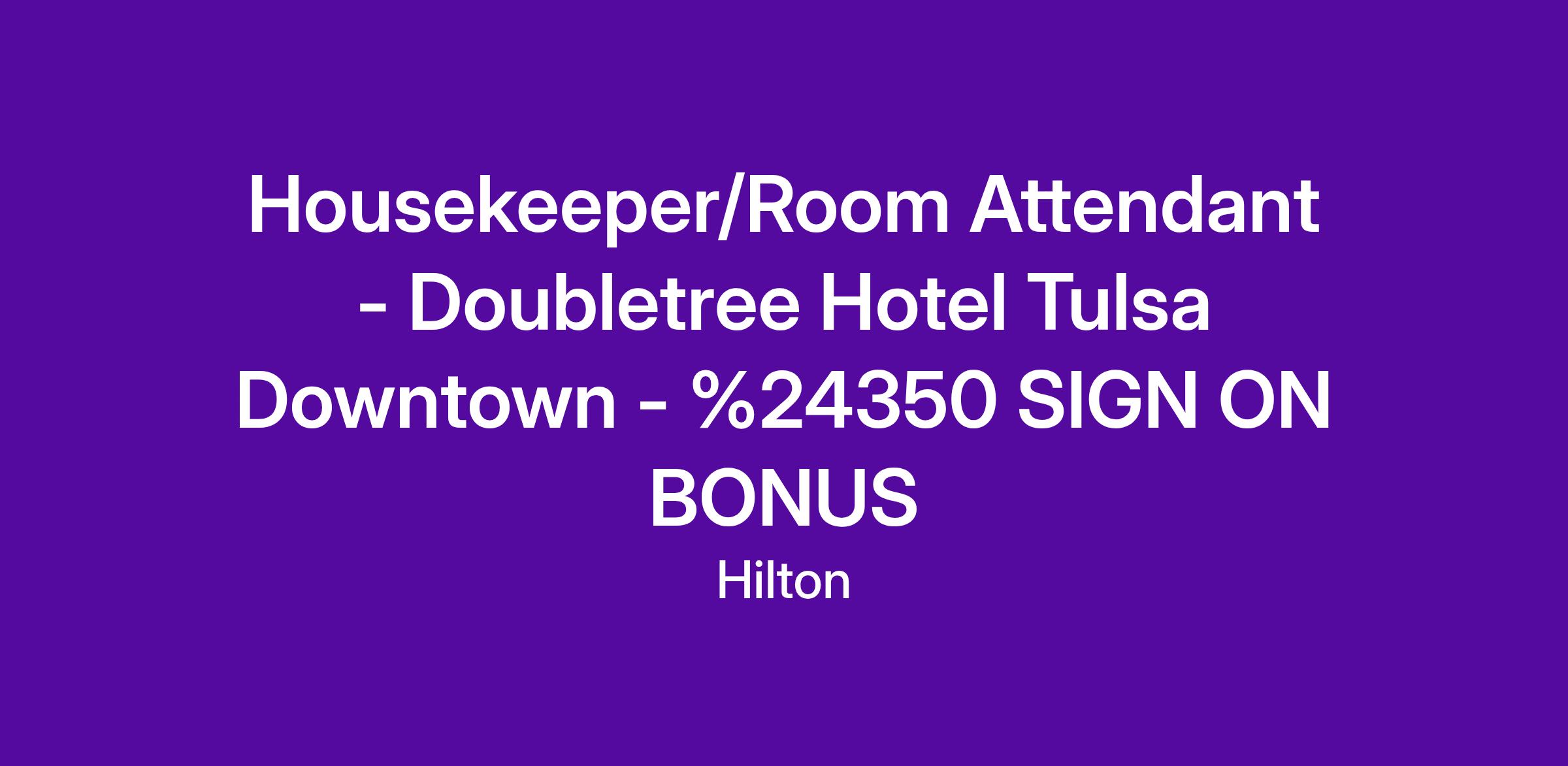 $350 SIGN ON BONUS As part of Team Hilton, our Housekeepers love being a part of our award-winning culture. From flexible scheduling and a friendly workplace environment to competitive health benefits, career growth opportunities and our Go Hilton travel discount program, you’ll love working at Hilton!