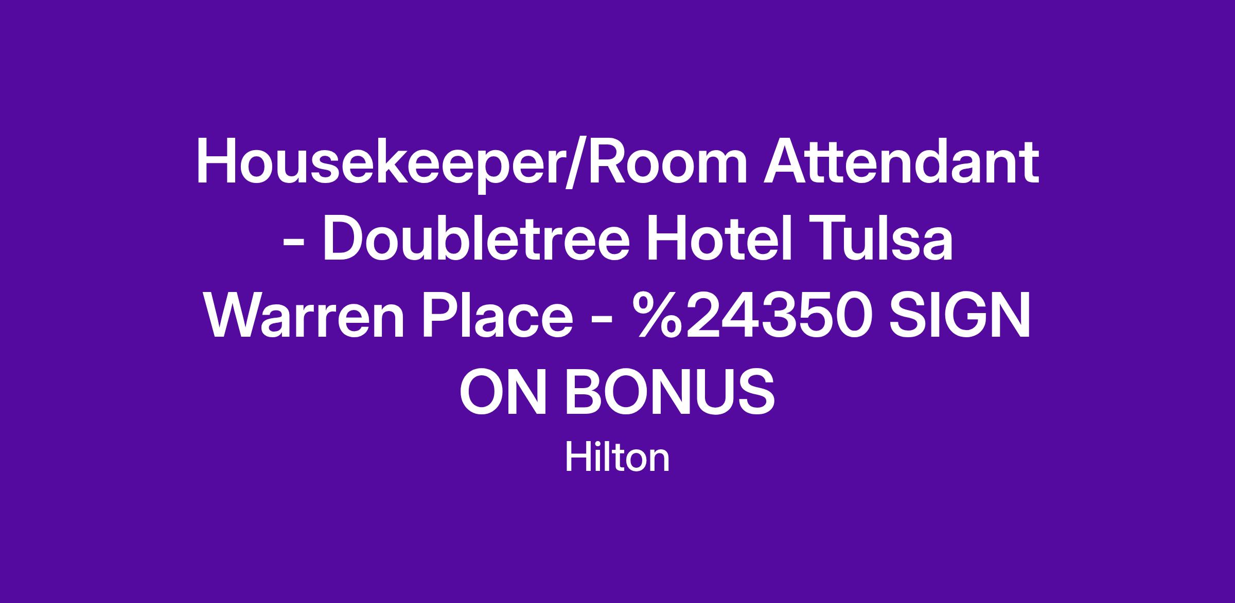 $350 SIGN ON BONUS As part of Team Hilton, our Housekeepers love being a part of our award-winning culture. From flexible scheduling and a friendly workplace environment to competitive health benefits, career growth opportunities and our Go Hilton travel discount program, you’ll love working at Hilton!