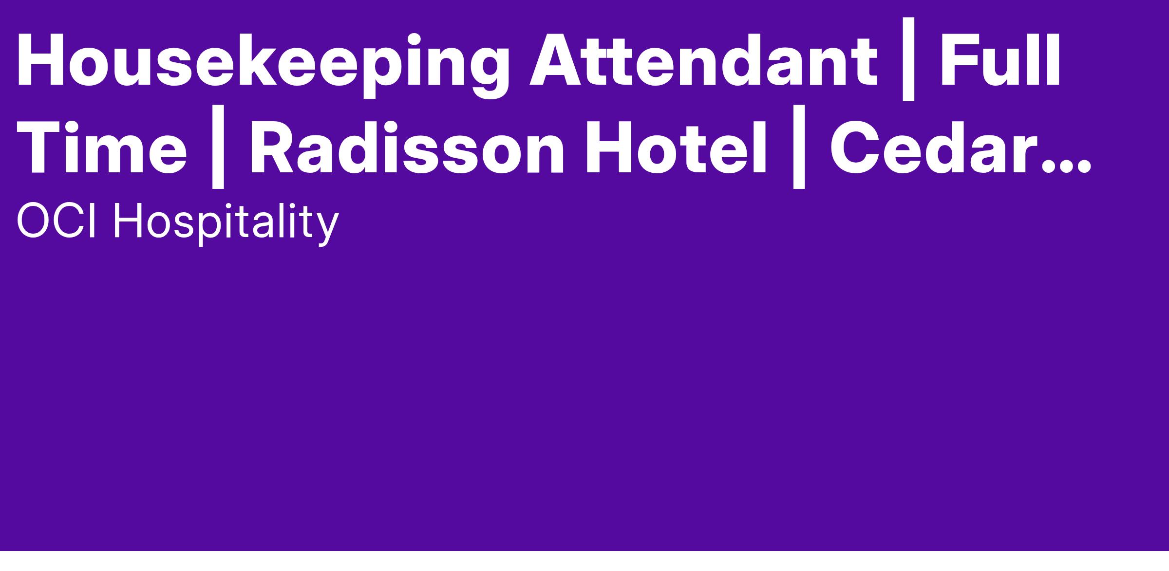 Welcome to Radisson Hotel Cedar Rapids! We are so glad you are considering us as your future workplace! At Hyatt Place we have 148 rooms, a fitness center, business center, 3 meeting rooms with 2,000 square feet, and an on-site restaurant and bar. We provide quests with free breakfast and so much more!