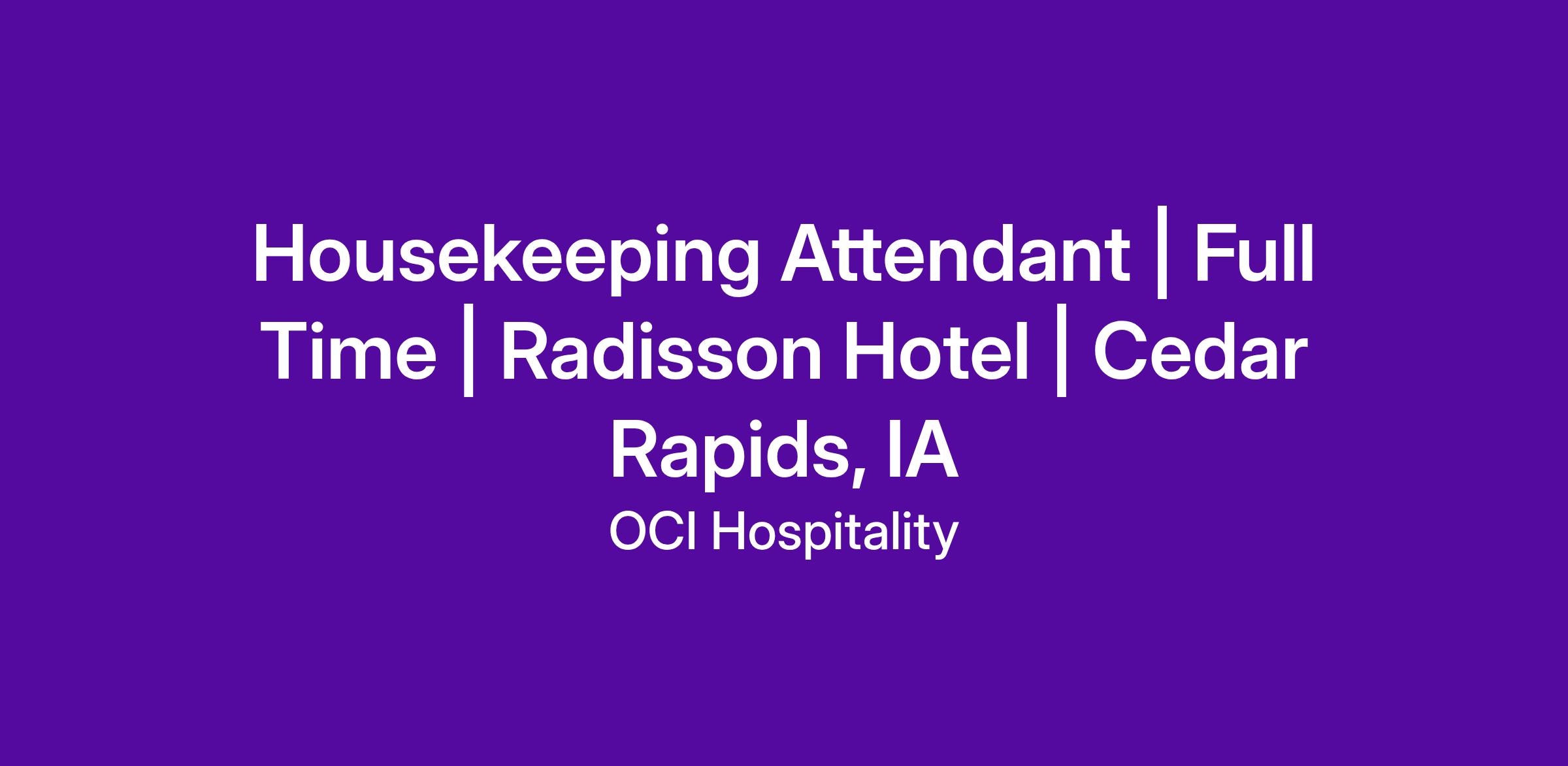 Welcome to Radisson Cedar Rapids! We are so glad you are considering us as your future workplace! At Radisson we have 220 rooms, a fitness center, business center, 14 meeting rooms with 28,000 square feet, an indoor pool, and an on-site restaurant and bar. We provide quests with free breakfast and so much more!