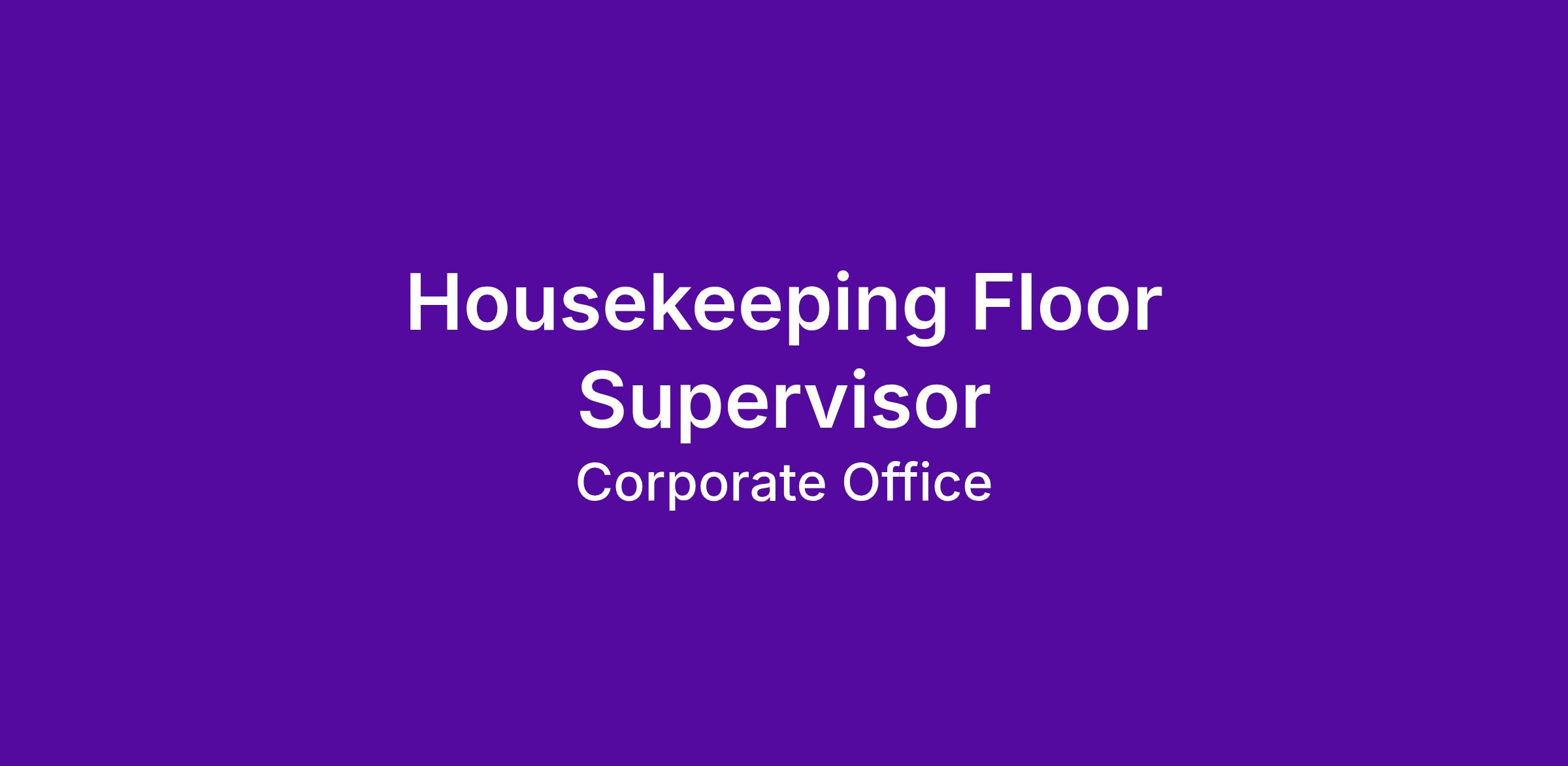 The role of the Housekeeping Floor Supervisor is to ensure that the cleaning and servicing of guestrooms meet the Omni standards.