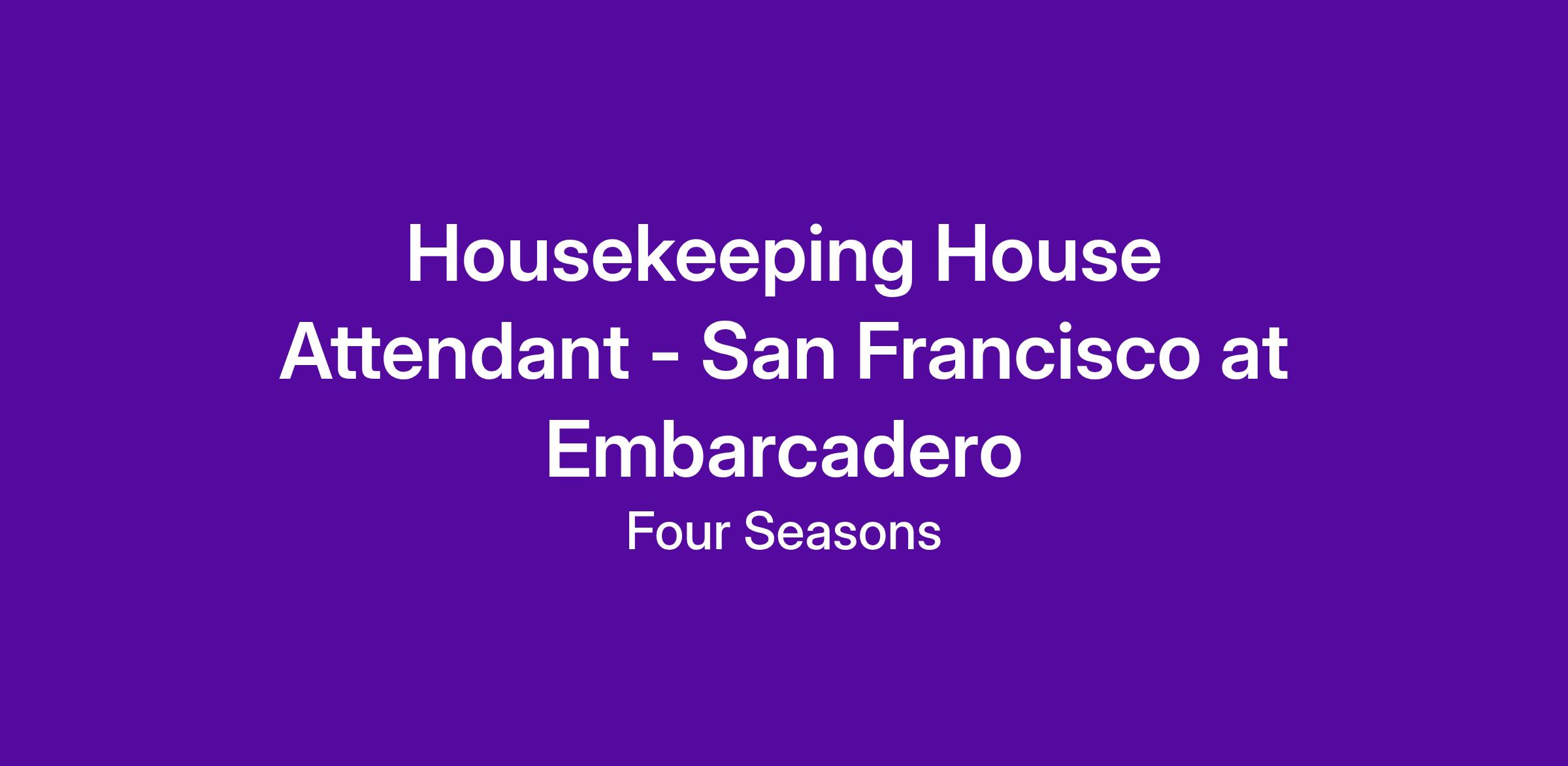 Four Seasons Hotel San Francisco at Embarcadero is looking for a Housekeeping House Attendant who shares our passion for excellence and is enthusiastic about creating the ultimate service experience.