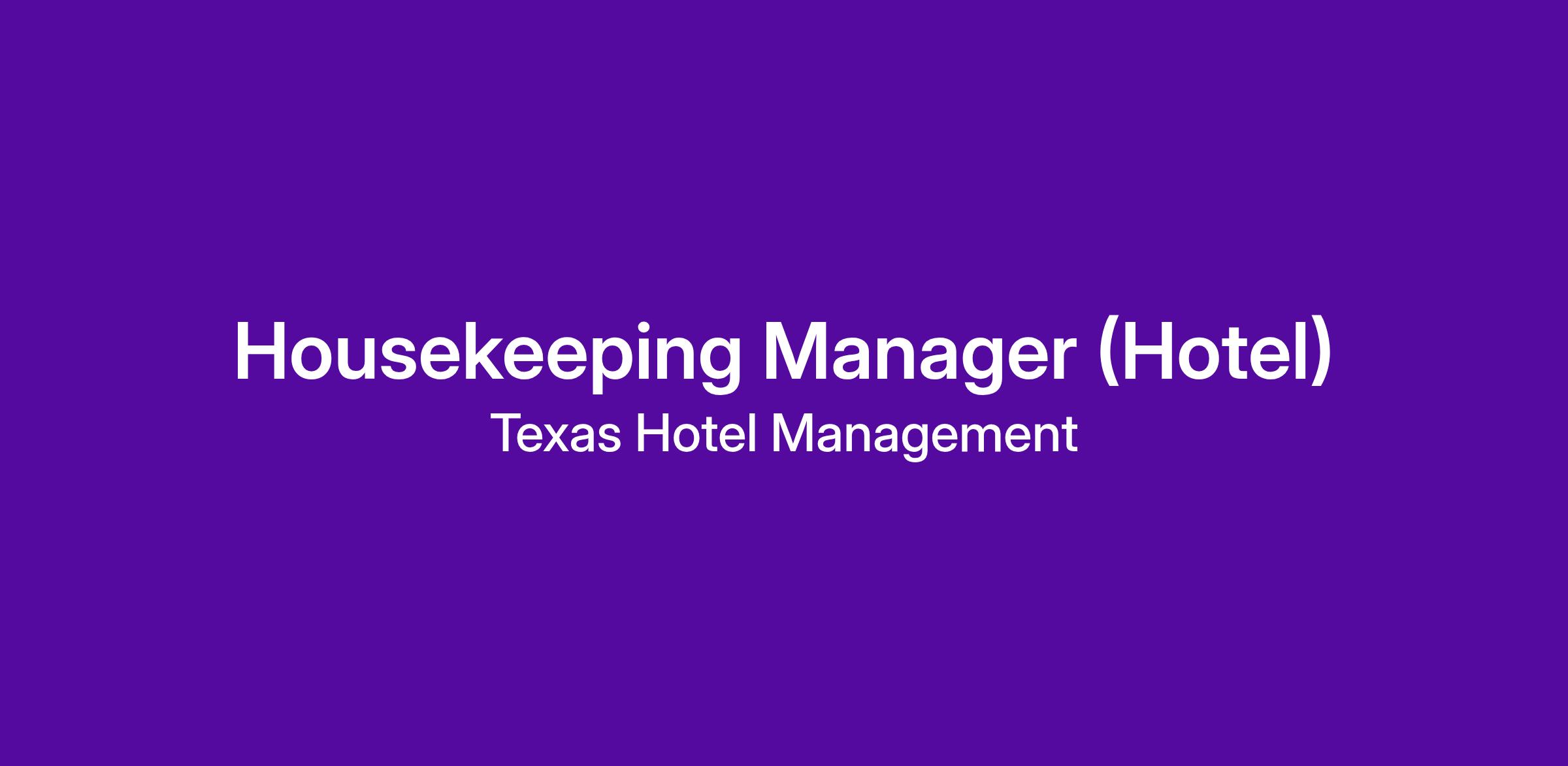 Proven experience as a Housekeeping Manager or Assistant Housekeeping Manager in a hotel