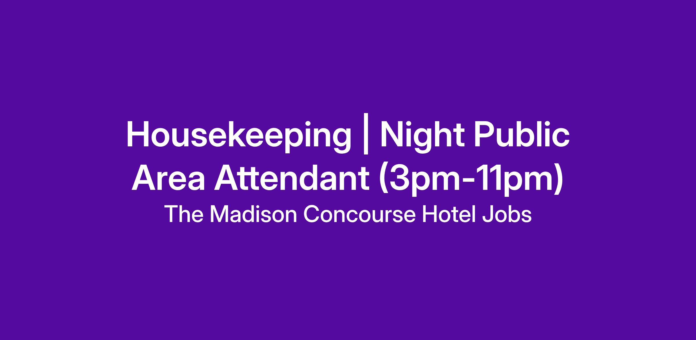 The Public Area Attendant is responsible for ensuring the cleanliness of public spaces and guest rooms as needed. This full-time position is 3pm-11pm, with Friday and Saturday night availability required. Ideal candidates are flexible and able to work any evening as needed. The starting rate for this position is $15.75 per hour, with $1/hr premium pay on weekends.
