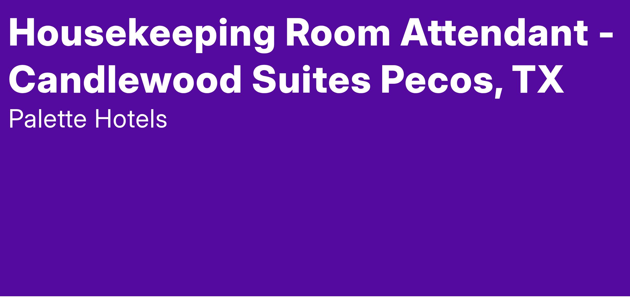 Palette Hotels, is an equal opportunity employer with policies prohibiting unlawful discrimination on the basis of any protected classification under applicable local, state and/or federal laws, which can include race, color, creed, sex, national origin, age, veteran status or physical or mental disability unrelated to job requirements.